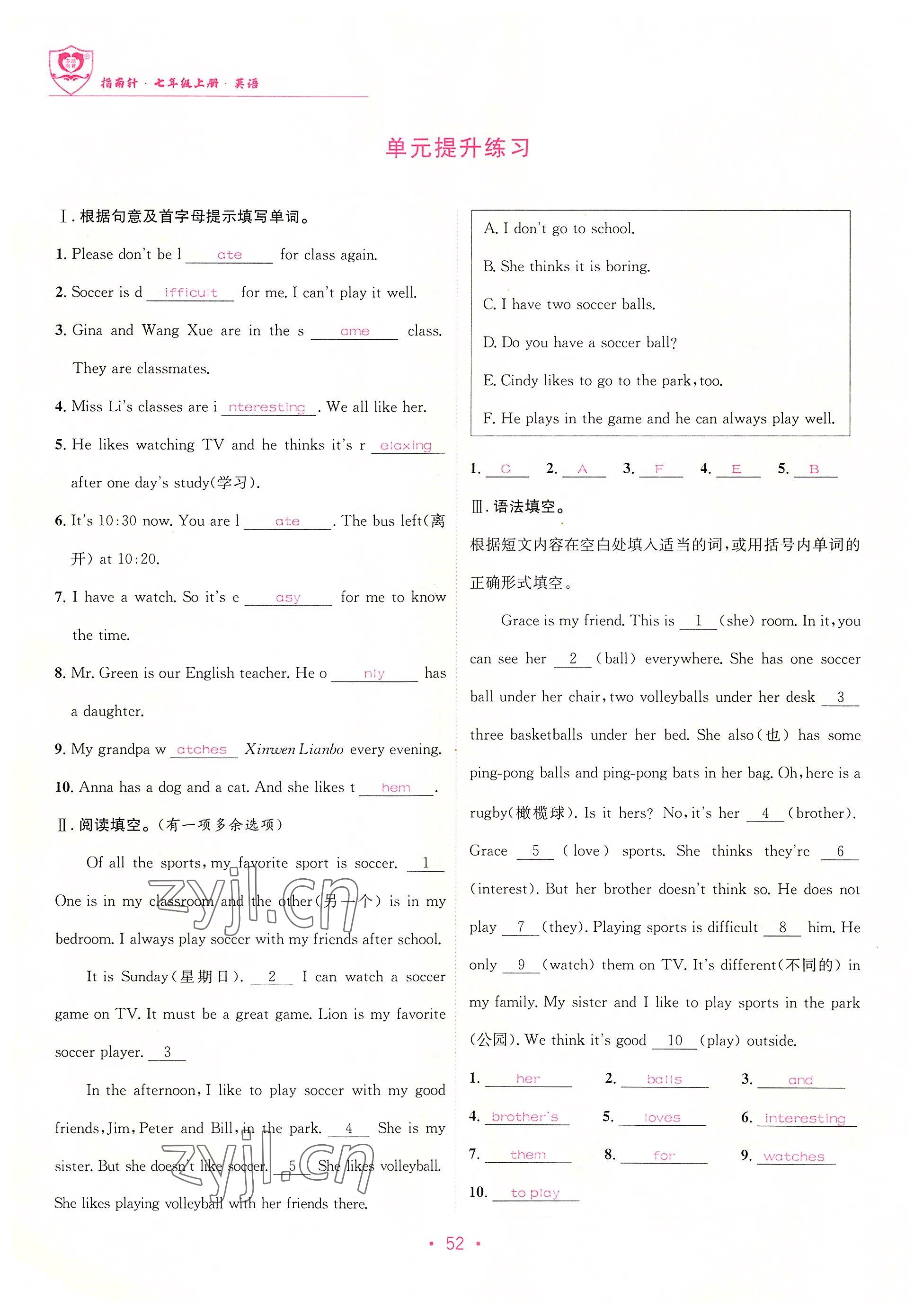 - 参考答案第52页