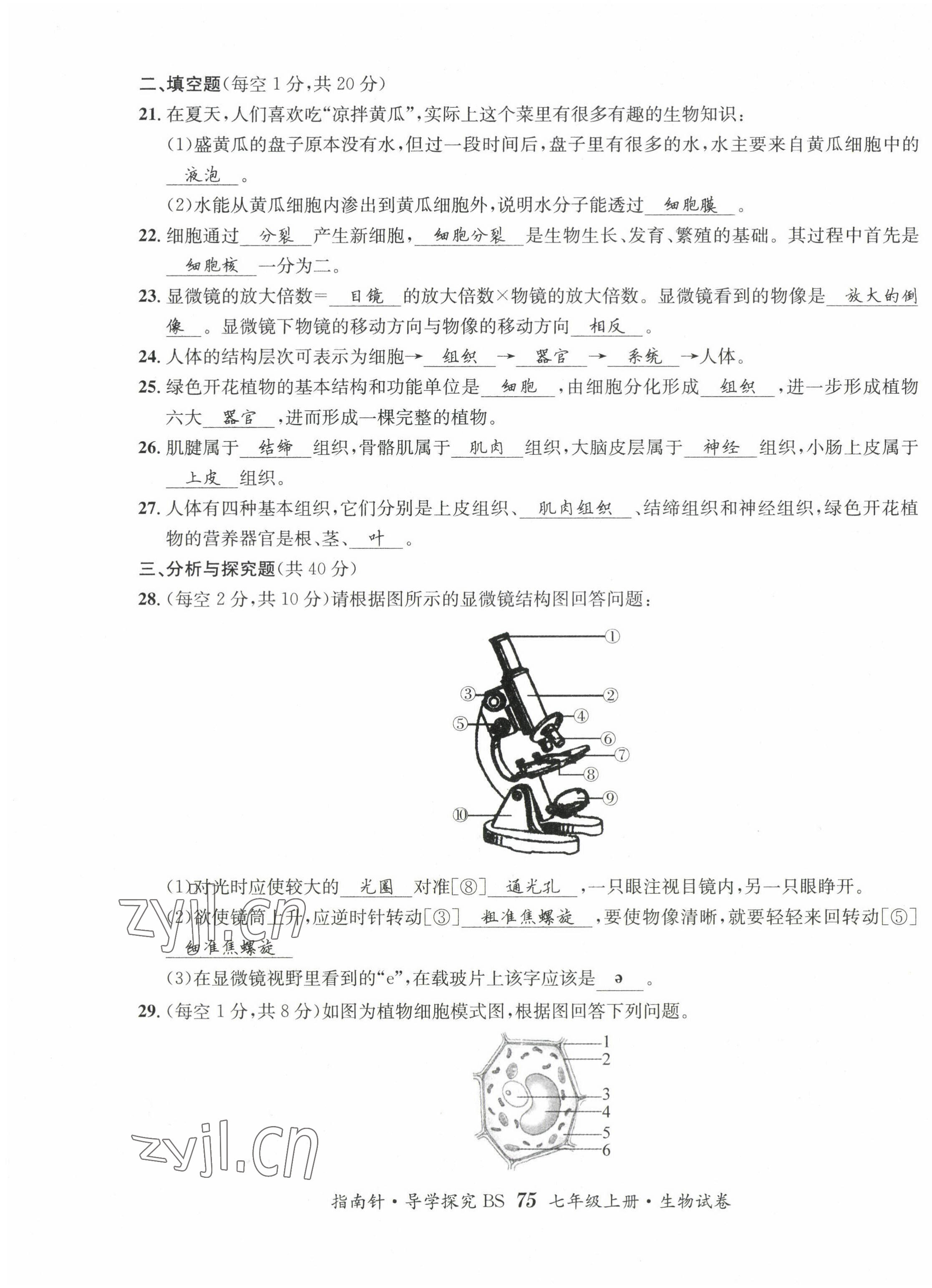 注:目前有些书本章节名称可能整理的还不是很完善,但都是按照顺序排列的,请同学们按照顺序仔细查找。练习册 2022年指南针课堂优化七年级生物上册北师大版 答案主要是用来给同学们做完题方便对答案用的,请勿直接抄袭。