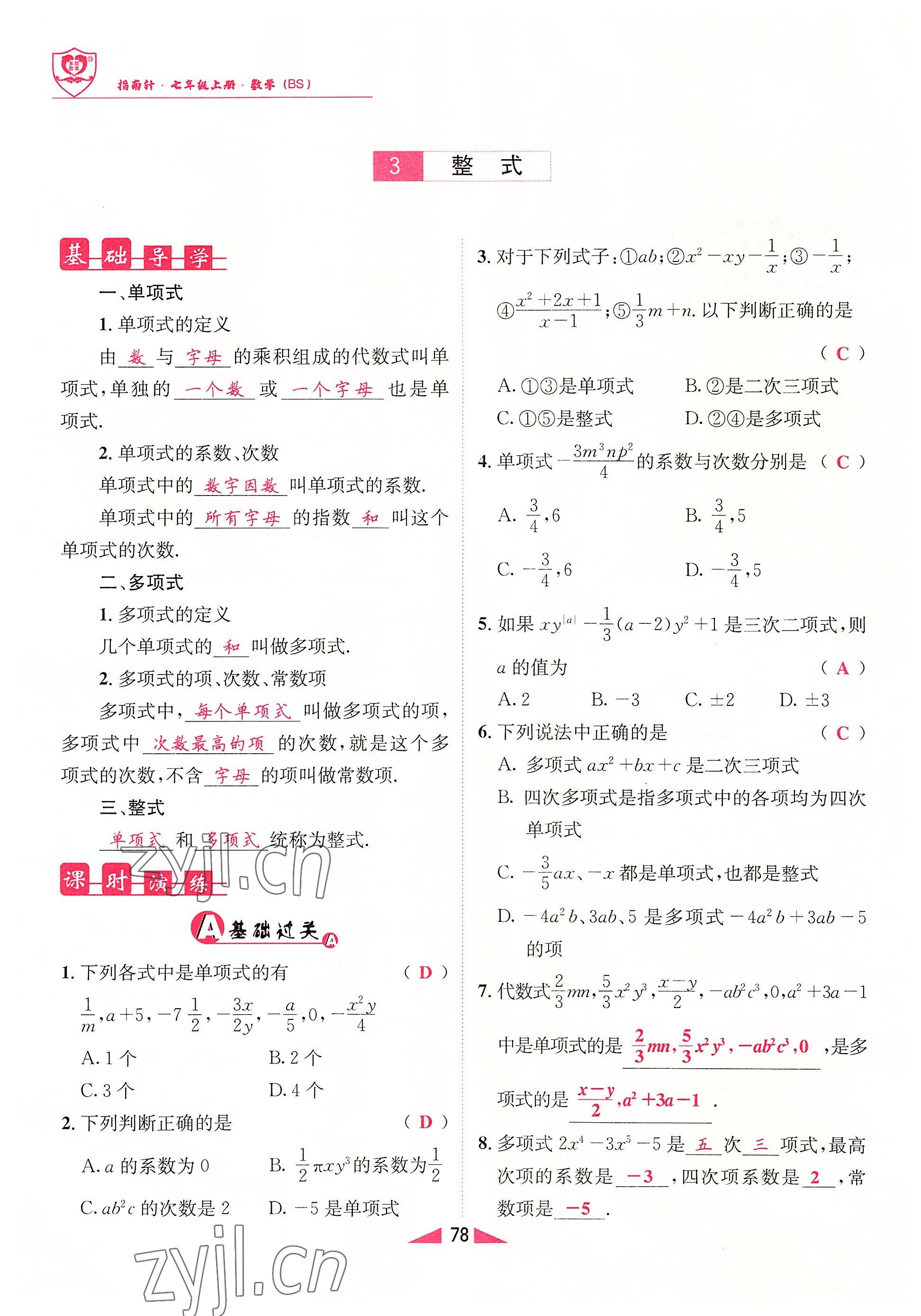 注:目前有些书本章节名称可能整理的还不是很完善,但都是按照顺序排列的,请同学们按照顺序仔细查找。练习册 2022年指南针课堂优化七年级数学上册北师大版 答案主要是用来给同学们做完题方便对答案用的,请勿直接抄袭。
