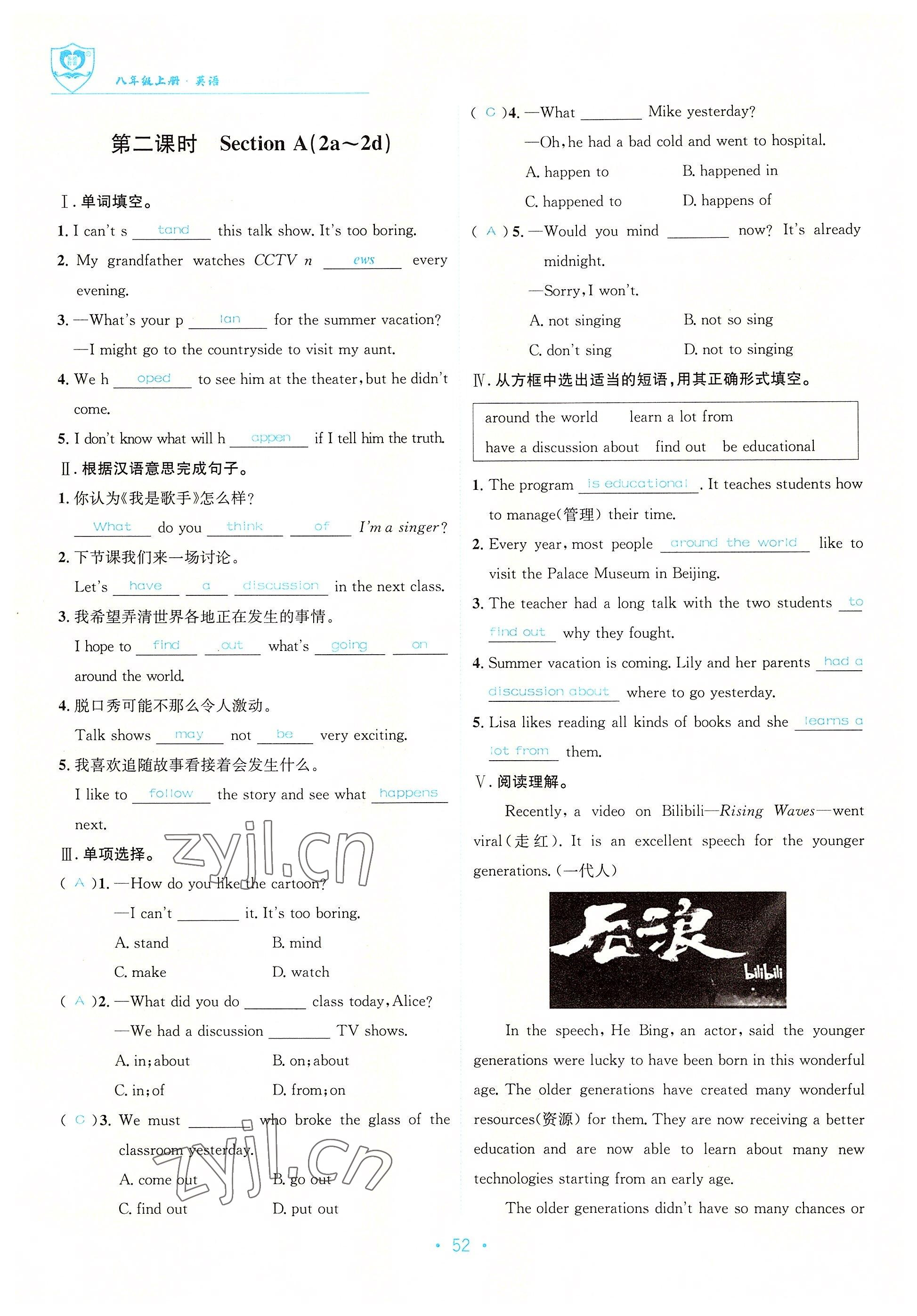 - 参考答案第52页