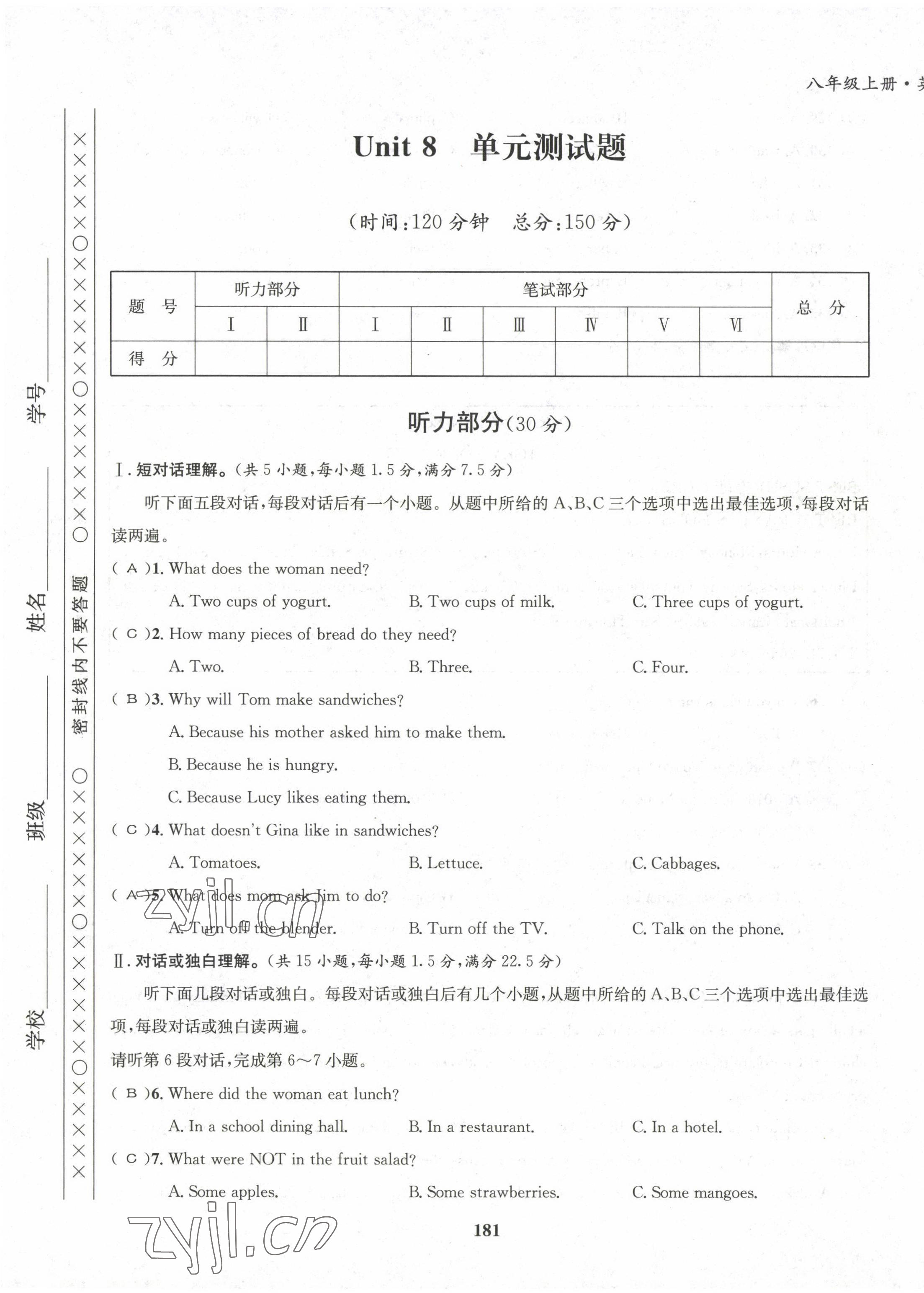 - 参考答案第8页