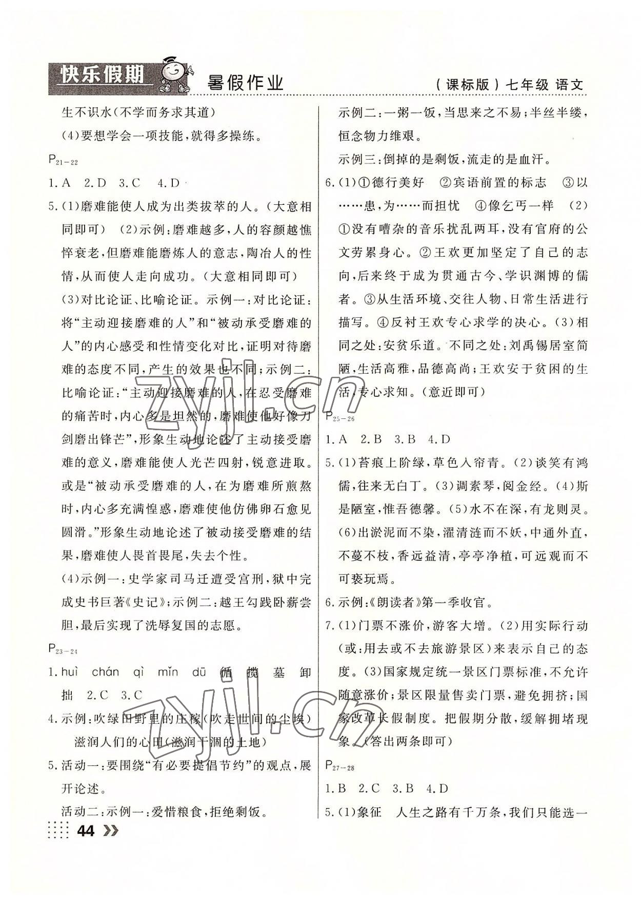 注:目前有些书本章节名称可能整理的还不是很完善,但都是按照顺序排列的,请同学们按照顺序仔细查找。练习册 2022年暑假作业本土假期七年级语文课标版 答案主要是用来给同学们做完题方便对答案用的,请勿直接抄袭。