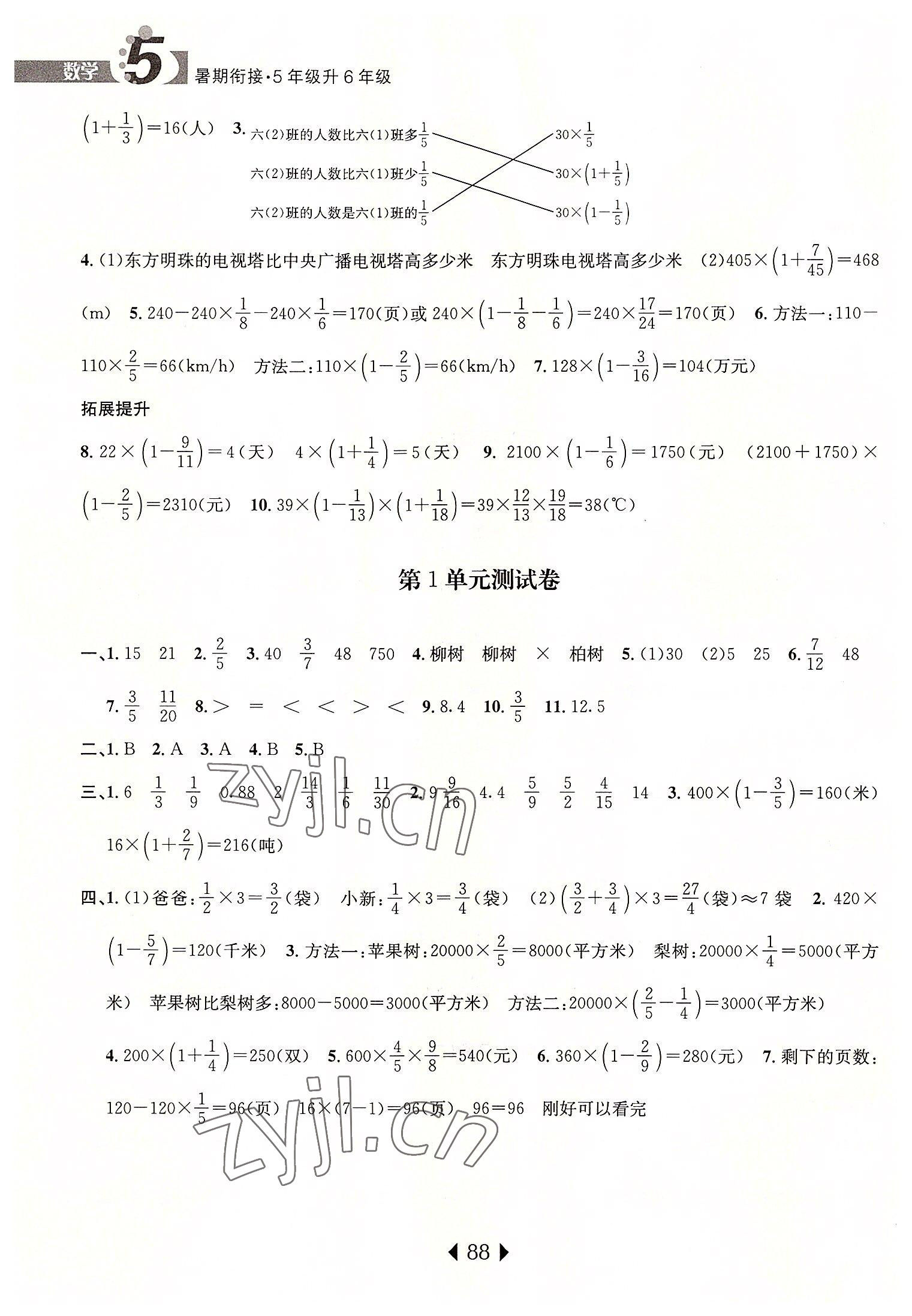 注:目前有些书本章节名称可能整理的还不是很完善,但都是按照顺序排列的,请同学们按照顺序仔细查找。练习册 2022年学而优暑期衔接五升六年级数学南京大学出版社 答案主要是用来给同学们做完题方便对答案用的,请勿直接抄袭。