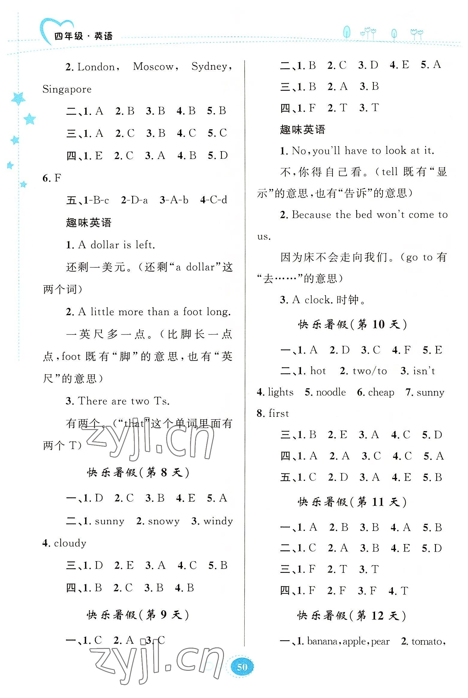 注:目前有些书本章节名称可能整理的还不是很完善,但都是按照顺序排列的,请同学们按照顺序仔细查找。练习册 2022年暑假园地知识出版社四年级英语 答案主要是用来给同学们做完题方便对答案用的,请勿直接抄袭。