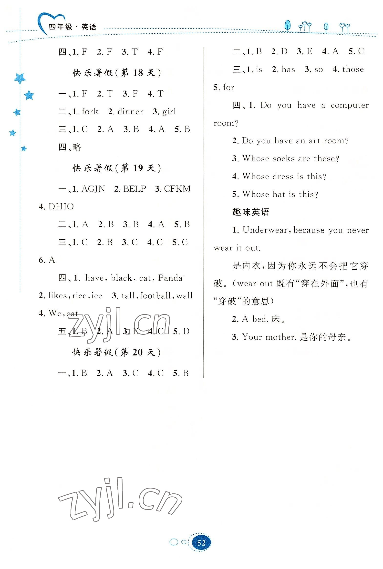 2022年暑假园地知识出版社四年级英语