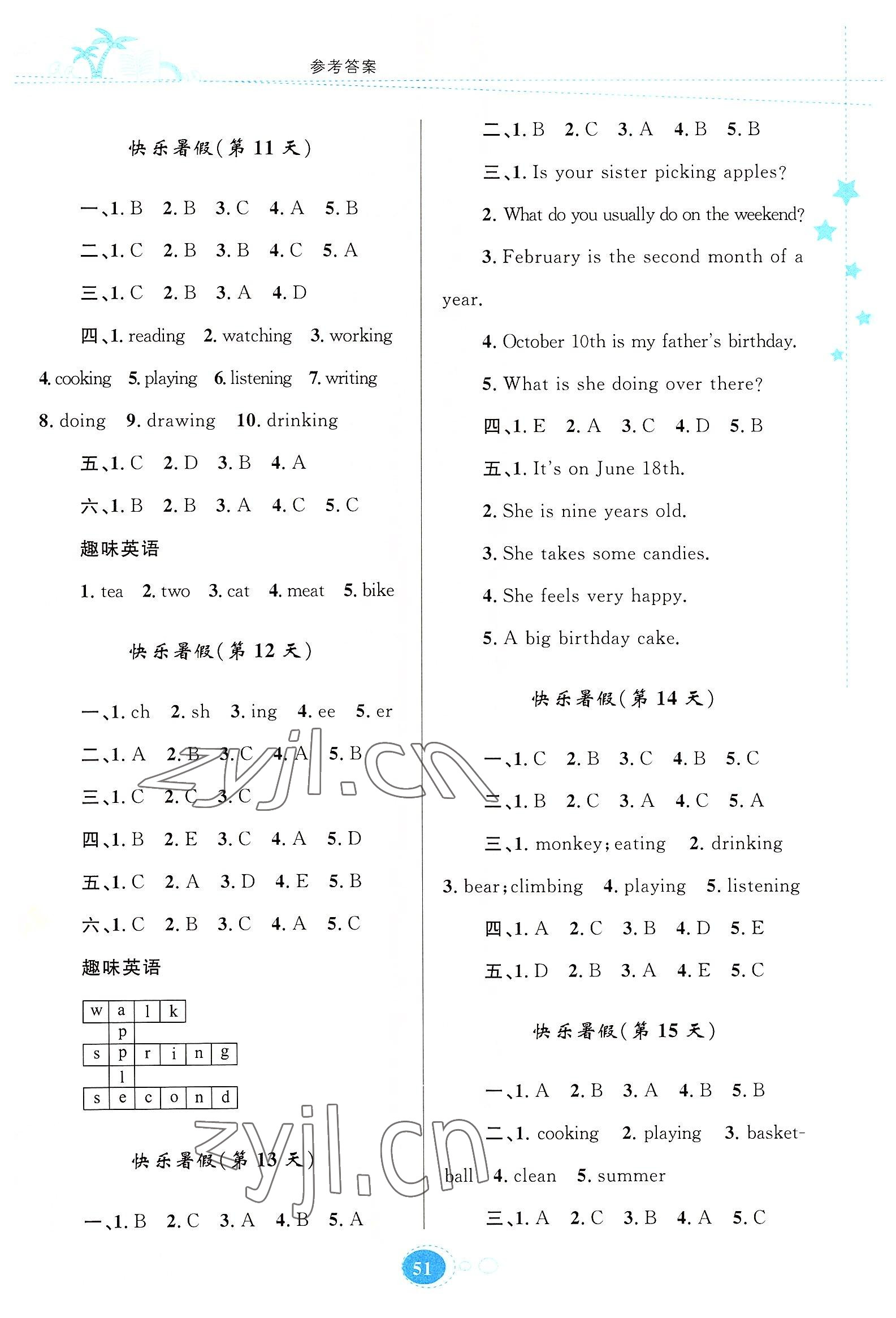 2022年暑假园地知识出版社五年级英语