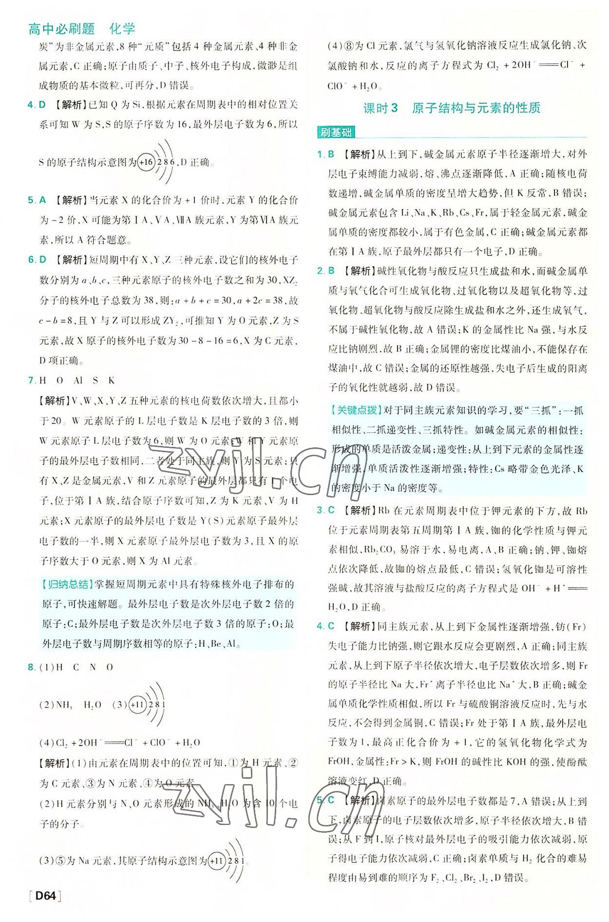 注:目前有些书本章节名称可能整理的还不是很完善,但都是按照顺序排列的,请同学们按照顺序仔细查找。练习册 2022年高中必刷题高中化学必修第一册人教版 答案主要是用来给同学们做完题方便对答案用的,请勿直接抄袭。
