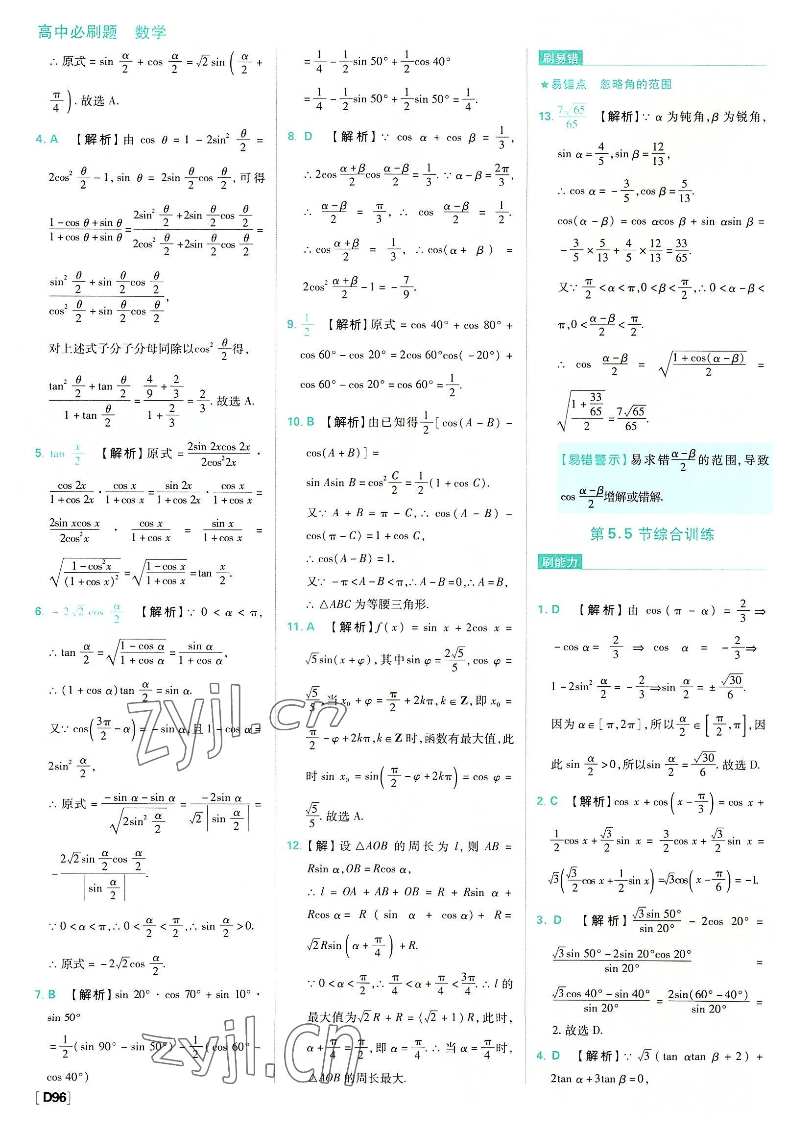 注:目前有些书本章节名称可能整理的还不是很完善,但都是按照顺序排列的,请同学们按照顺序仔细查找。练习册 2022年高中必刷题高中数学必修第一册人教版 答案主要是用来给同学们做完题方便对答案用的,请勿直接抄袭。