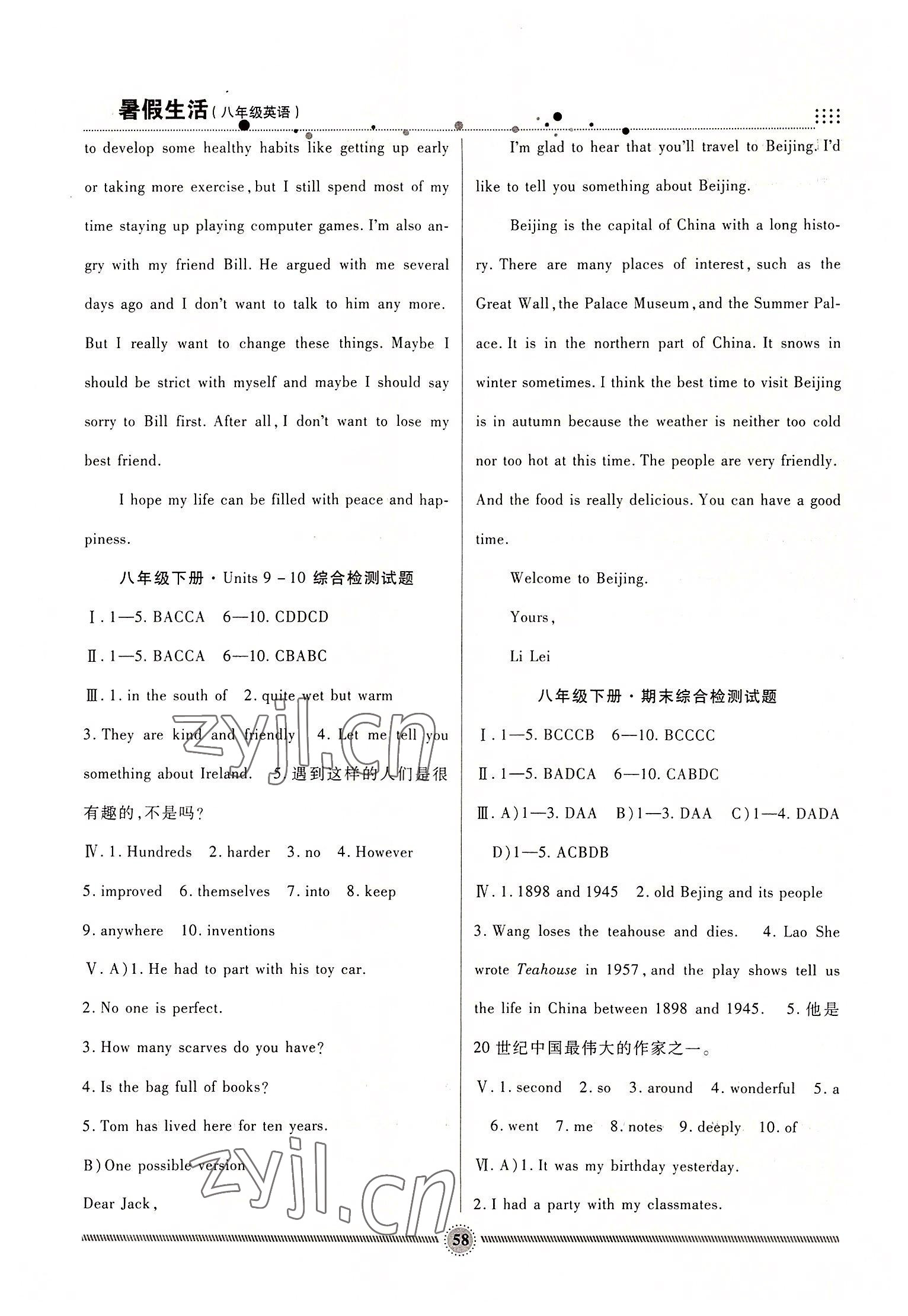 2022年暑假生活八年级英语人教版新疆文化出版社