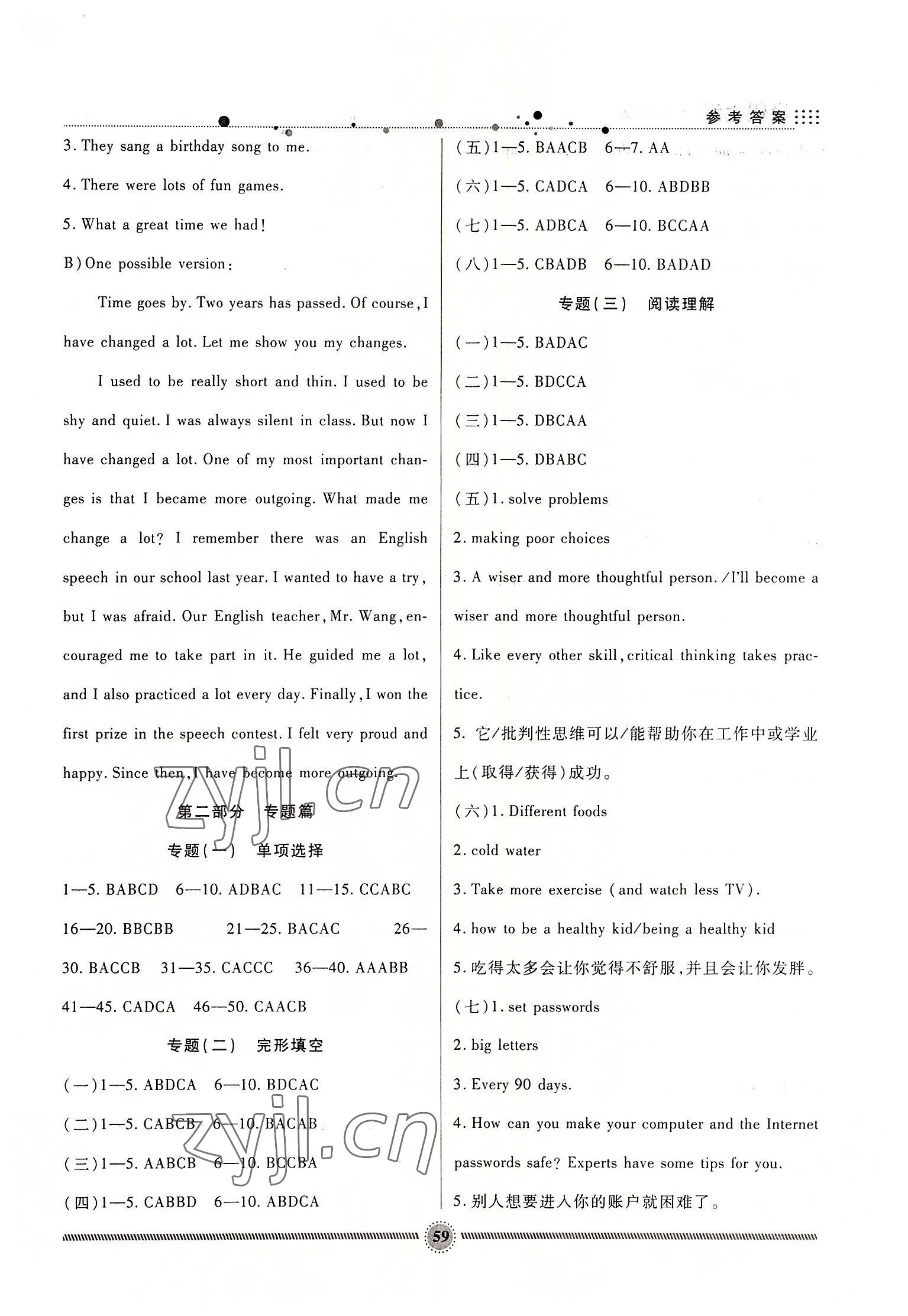注:目前有些书本章节名称可能整理的还不是很完善,但都是按照顺序排列的,请同学们按照顺序仔细查找。练习册 2022年暑假生活八年级英语人教版新疆文化出版社 答案主要是用来给同学们做完题方便对答案用的,请勿直接抄袭。