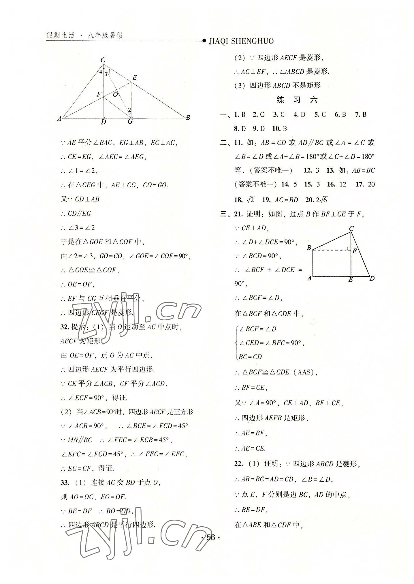 注:目前有些书本章节名称可能整理的还不是很完善,但都是按照顺序排列的,请同学们按照顺序仔细查找。练习册 2022年假期生活暑假八年级数学冀教版方圆电子音像出版社 答案主要是用来给同学们做完题方便对答案用的,请勿直接抄袭。