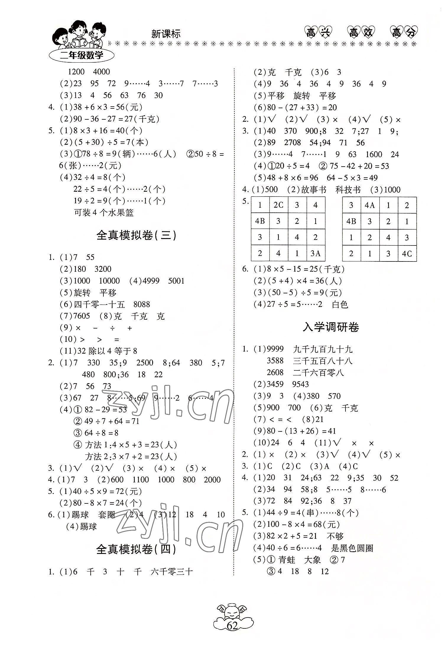 注:目前有些书本章节名称可能整理的还不是很完善,但都是按照顺序排列的,请同学们按照顺序仔细查找。练习册 2022年轻松暑假总复习二年级数学人教版 答案主要是用来给同学们做完题方便对答案用的,请勿直接抄袭。