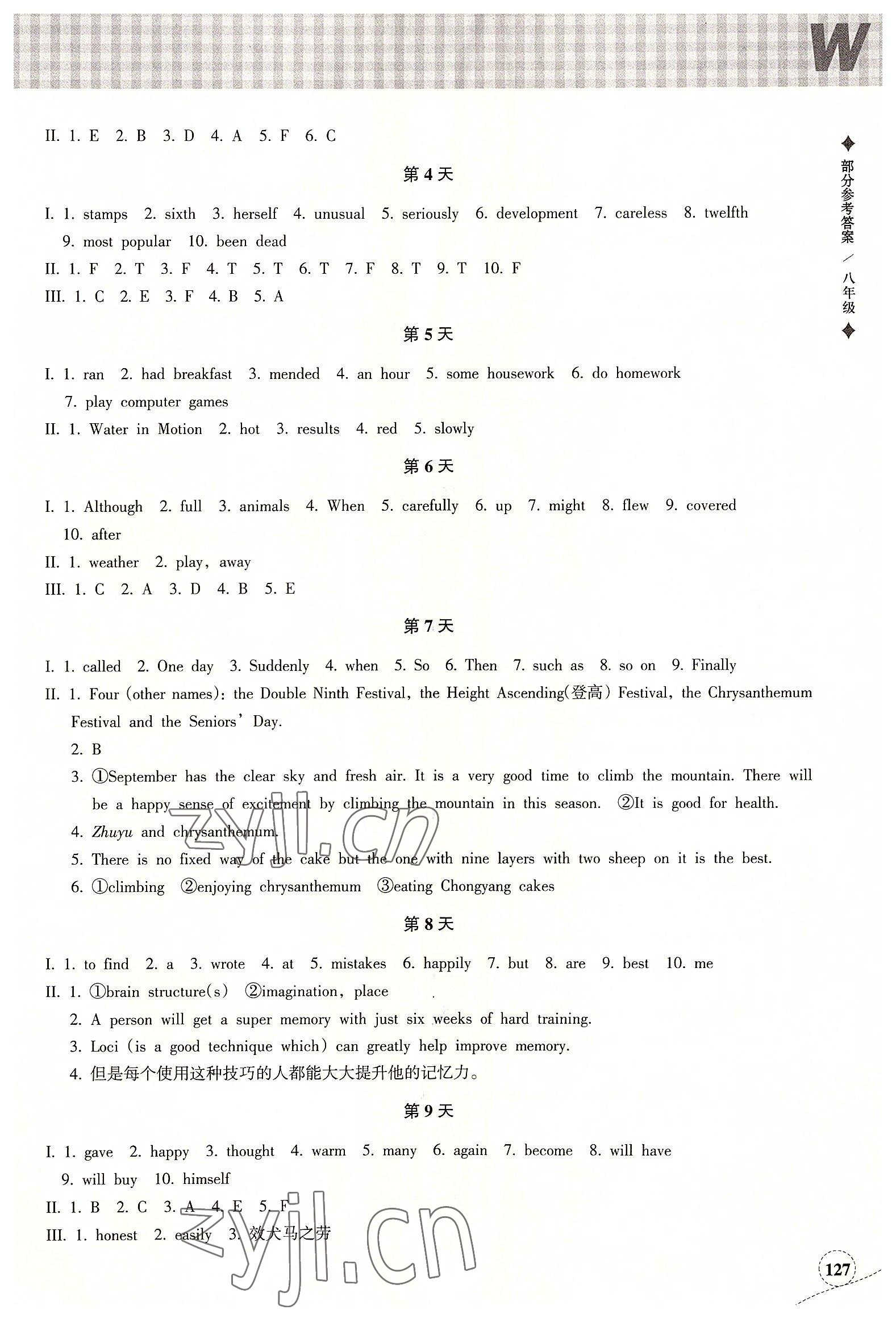 2022年暑假作业本浙江教育出版社八年级语文.英语外研版