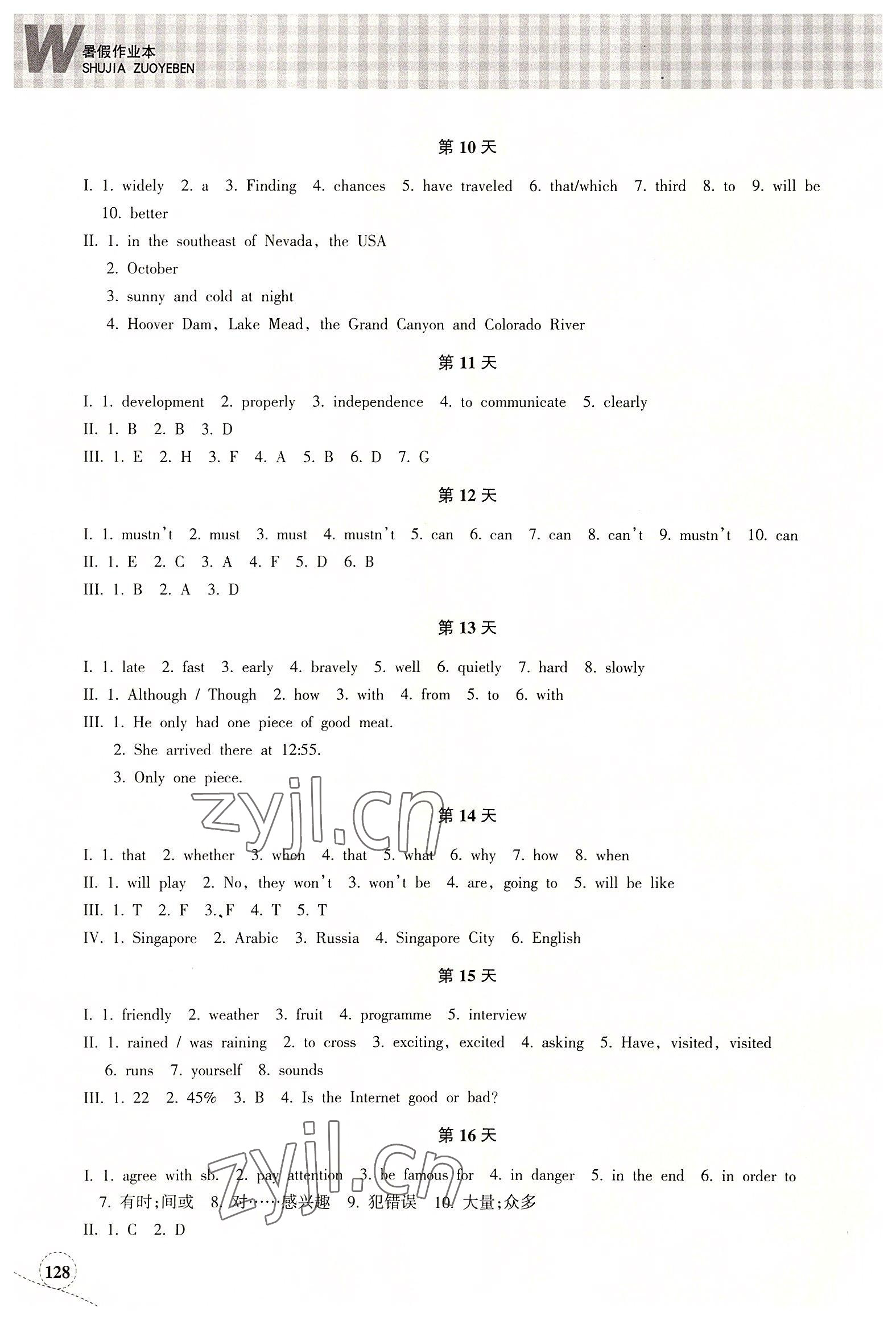 2022年暑假作业本浙江教育出版社八年级语文.英语外研版