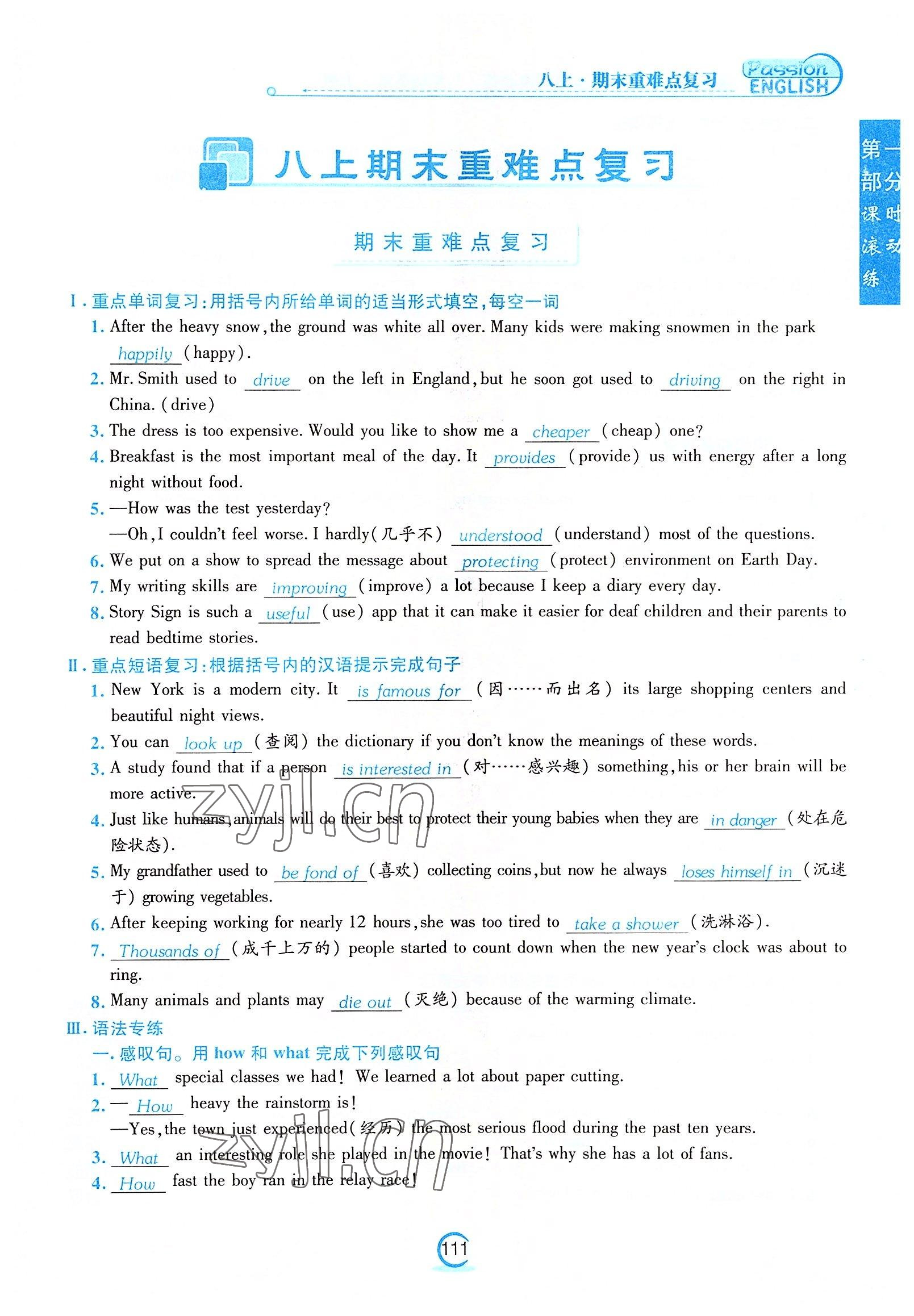 注:目前有些书本章节名称可能整理的还不是很完善,但都是按照顺序排列的,请同学们按照顺序仔细查找。练习册 2022年激情英语初中同步课时滚动练八年级英语上册仁爱版福建专版 答案主要是用来给同学们做完题方便对答案用的,请勿直接抄袭。