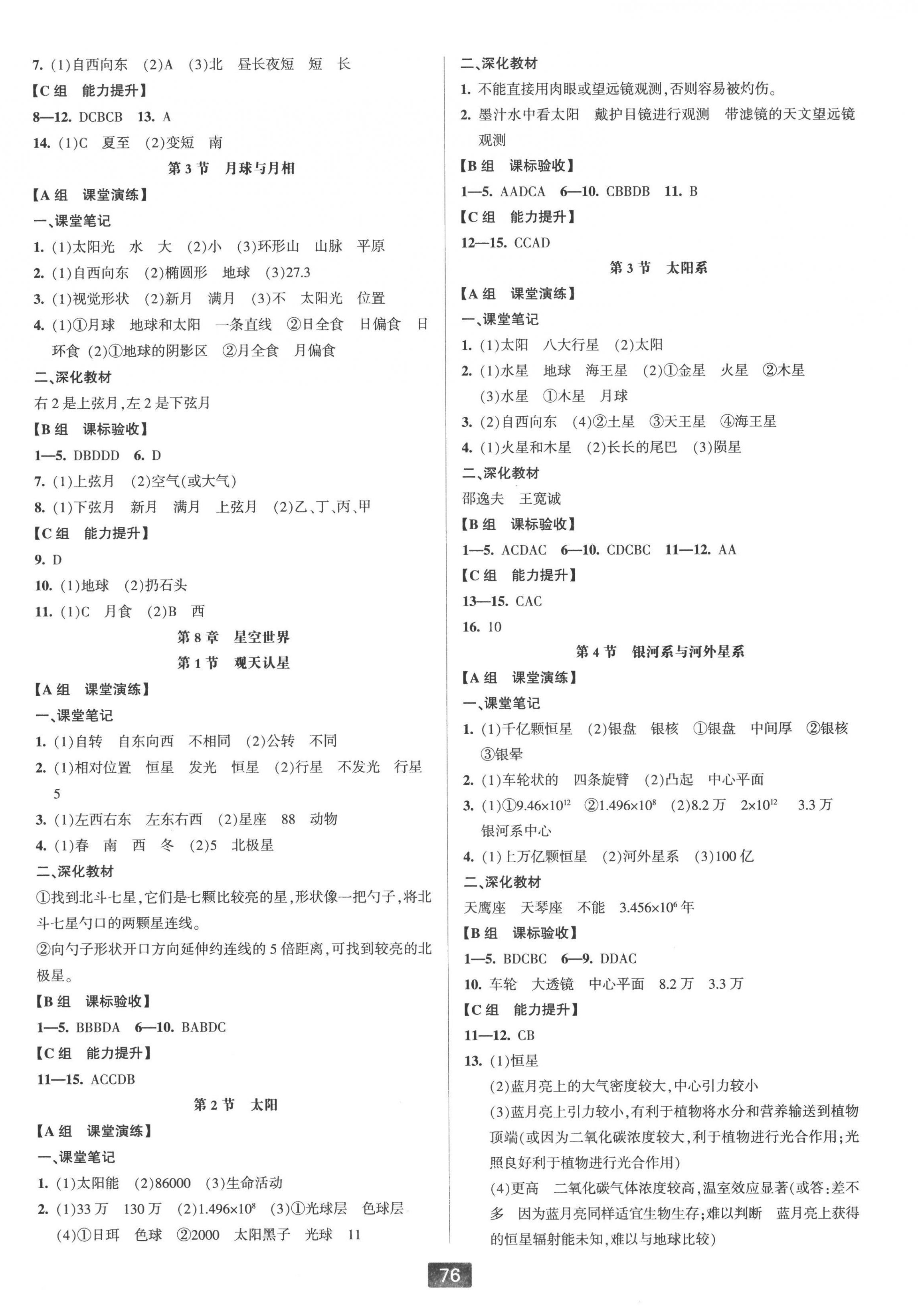 注:目前有些书本章节名称可能整理的还不是很完善,但都是按照顺序排列的,请同学们按照顺序仔细查找。练习册 2022年双减新课堂七年级科学上册华师大版 答案主要是用来给同学们做完题方便对答案用的,请勿直接抄袭。