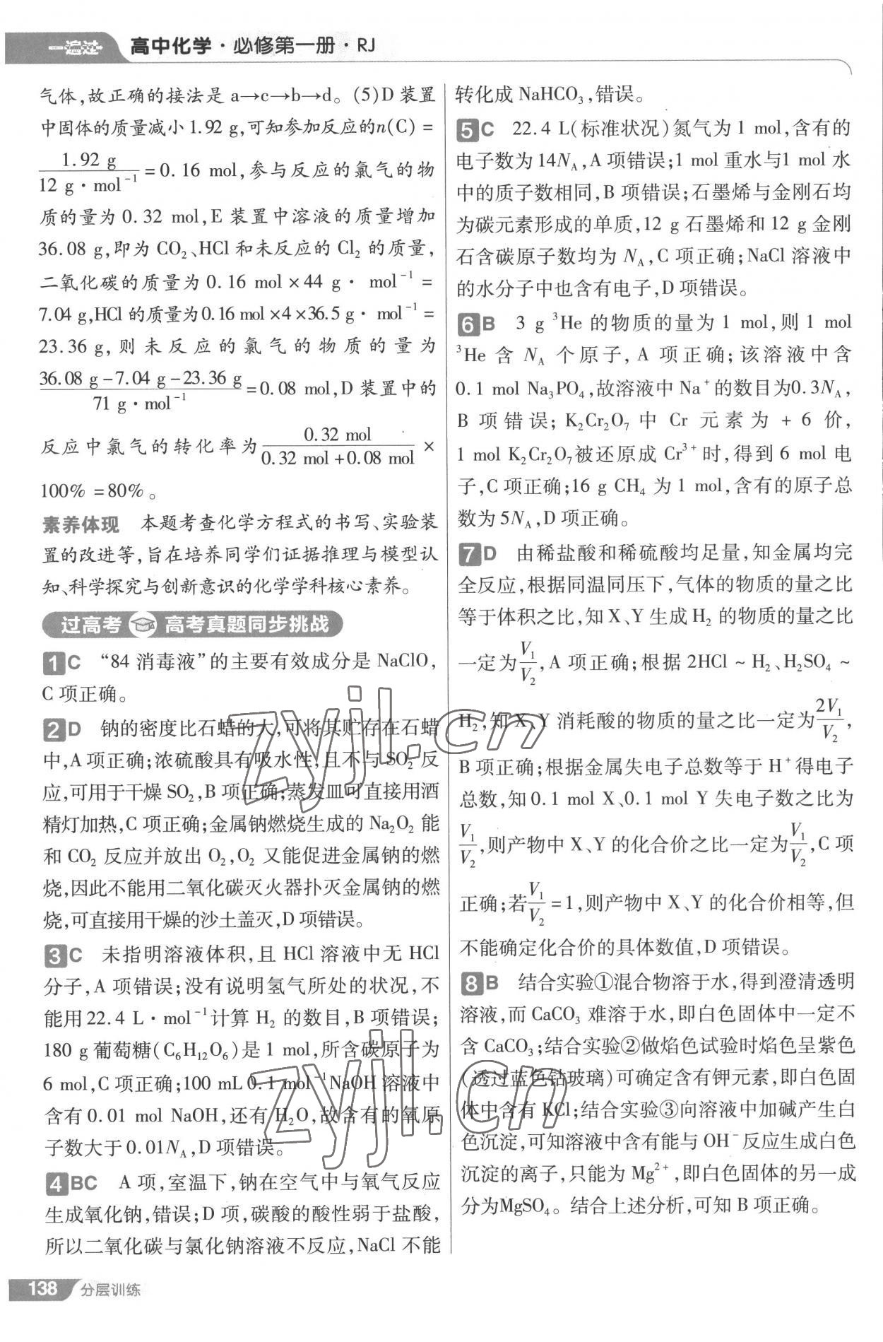 注:目前有些书本章节名称可能整理的还不是很完善,但都是按照顺序排列的,请同学们按照顺序仔细查找。练习册 2022年一遍过高中化学必修第一册人教版 答案主要是用来给同学们做完题方便对答案用的,请勿直接抄袭。