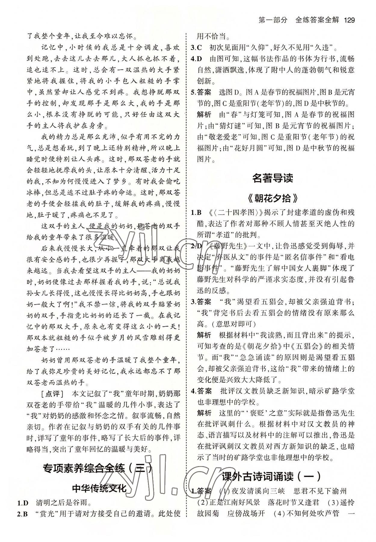 注:目前有些书本章节名称可能整理的还不是很完善,但都是按照顺序排列的,请同学们按照顺序仔细查找。练习册 2022年5年中考3年模拟初中语文七年级上册人教版五四学制 答案主要是用来给同学们做完题方便对答案用的,请勿直接抄袭。