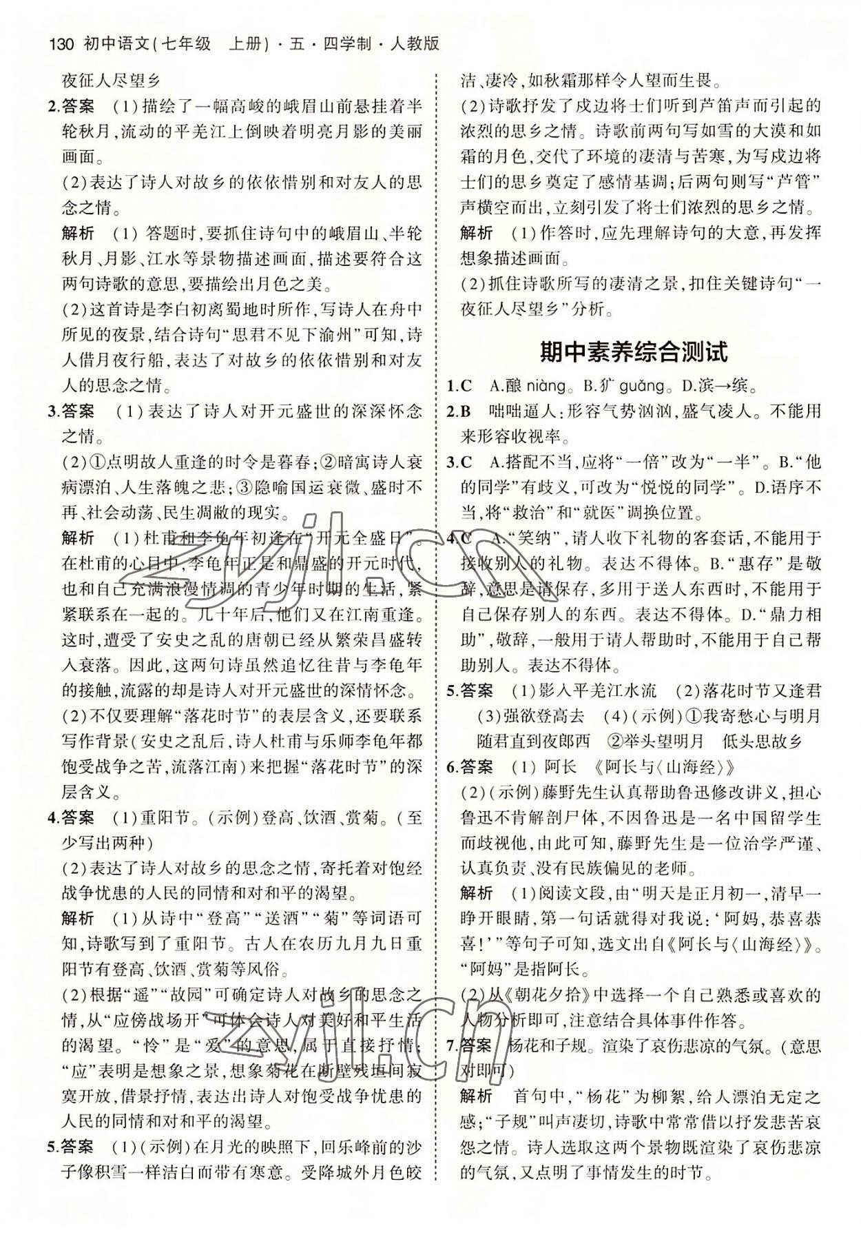 注:目前有些书本章节名称可能整理的还不是很完善,但都是按照顺序排列的,请同学们按照顺序仔细查找。练习册 2022年5年中考3年模拟初中语文七年级上册人教版五四学制 答案主要是用来给同学们做完题方便对答案用的,请勿直接抄袭。
