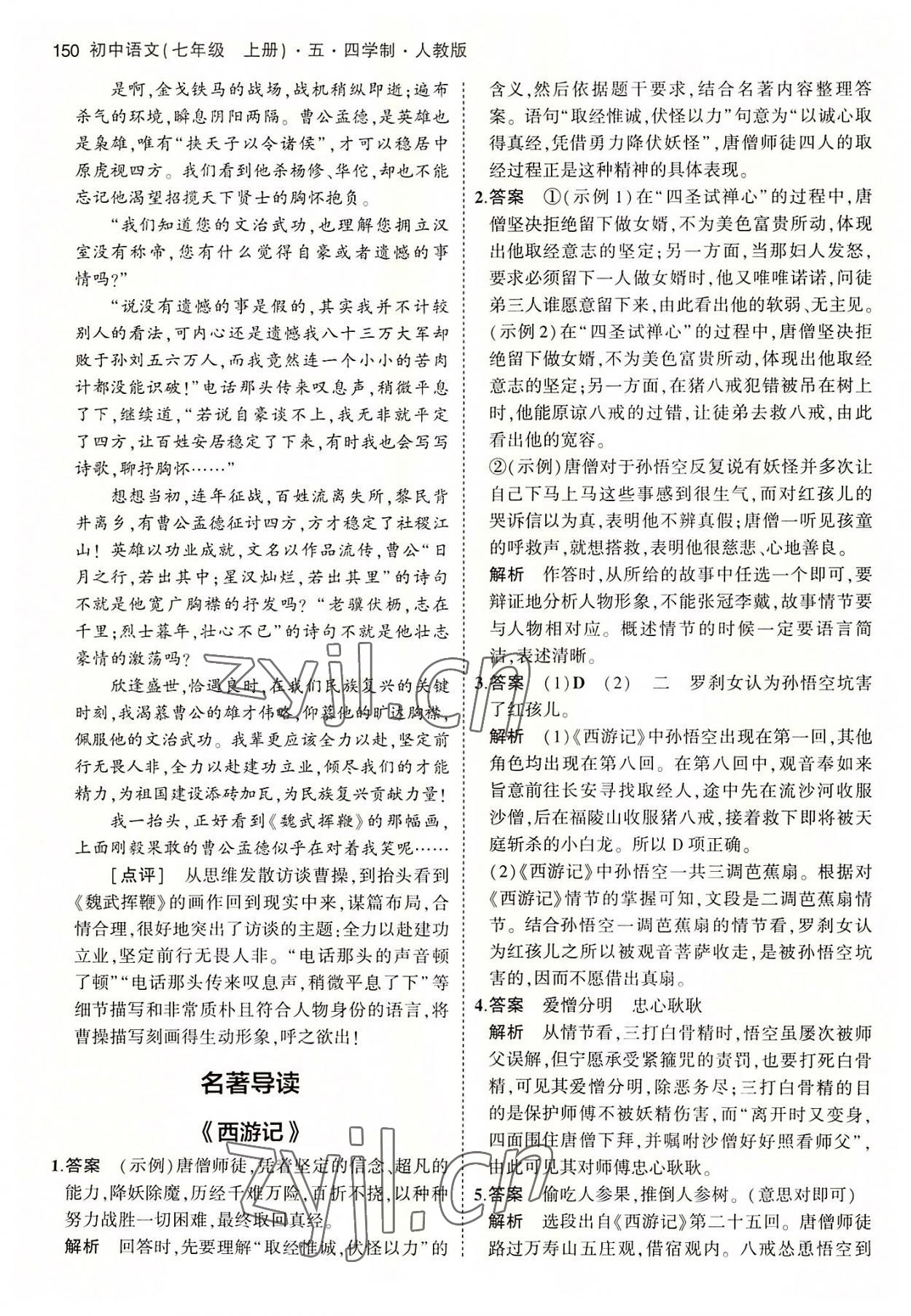 注:目前有些书本章节名称可能整理的还不是很完善,但都是按照顺序排列的,请同学们按照顺序仔细查找。练习册 2022年5年中考3年模拟初中语文七年级上册人教版五四学制 答案主要是用来给同学们做完题方便对答案用的,请勿直接抄袭。