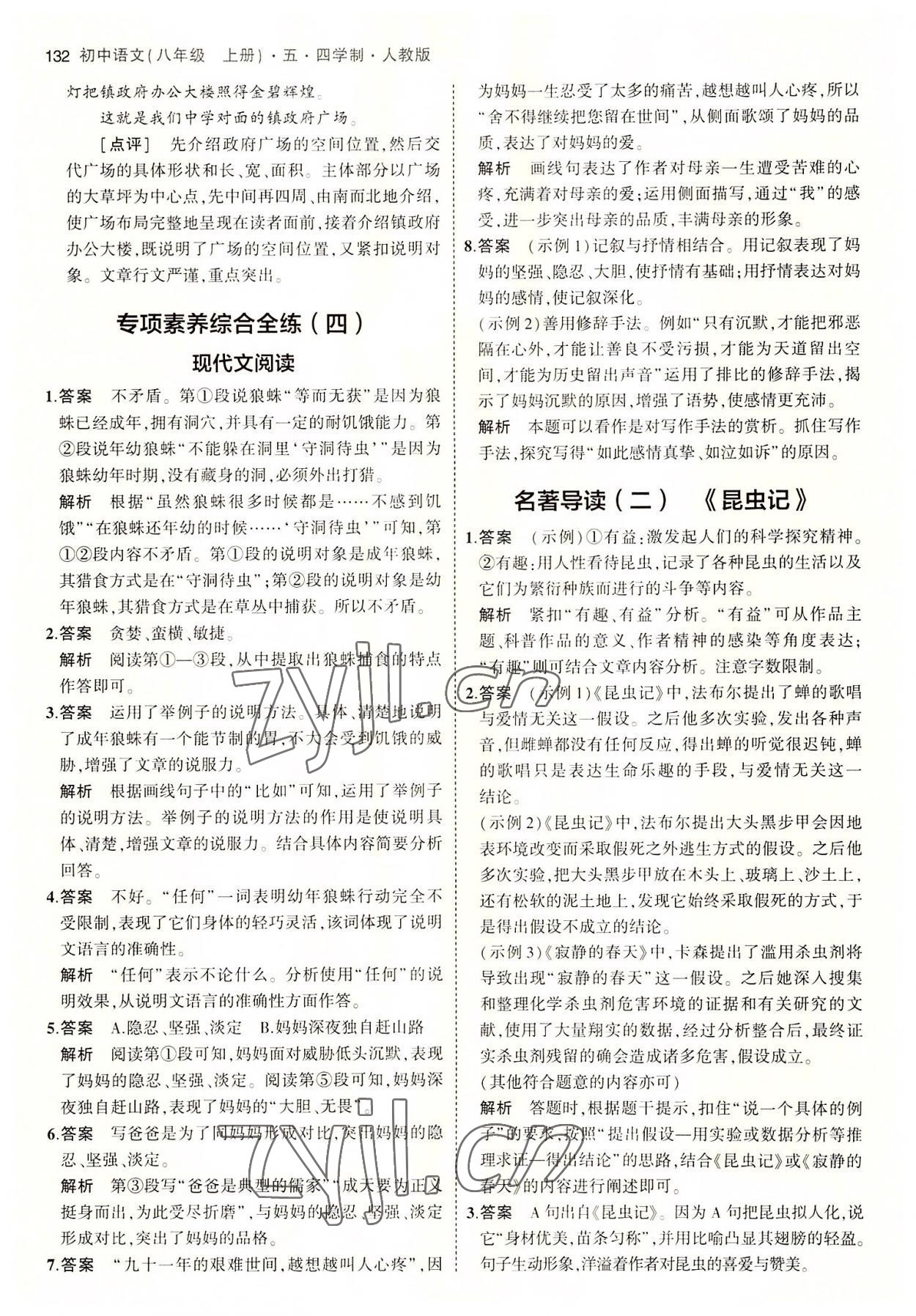 注:目前有些书本章节名称可能整理的还不是很完善,但都是按照顺序排列的,请同学们按照顺序仔细查找。练习册 2022年5年中考3年模拟初中语文八年级上册人教版五四制 答案主要是用来给同学们做完题方便对答案用的,请勿直接抄袭。