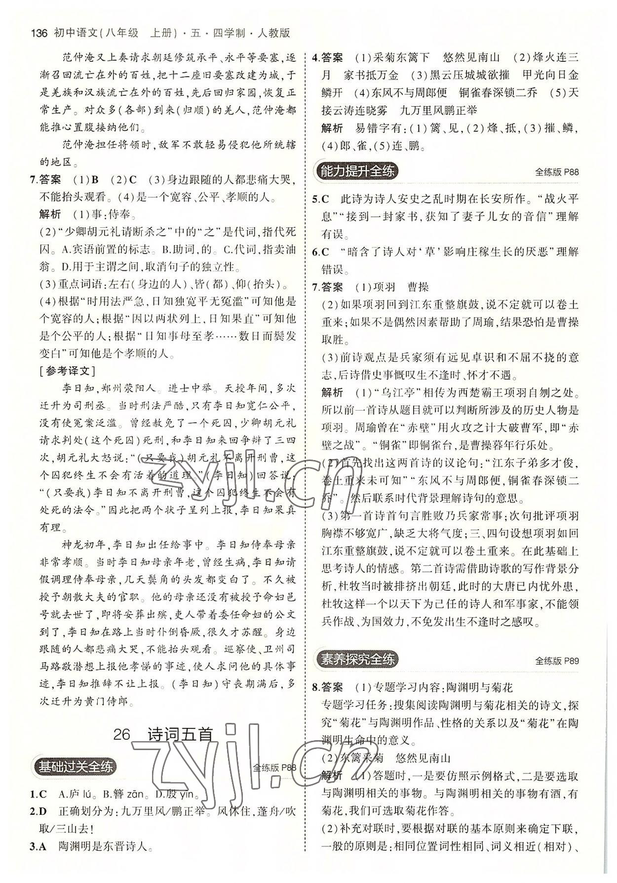 2022年5年中考3年模拟初中语文八年级上册人教版五四制