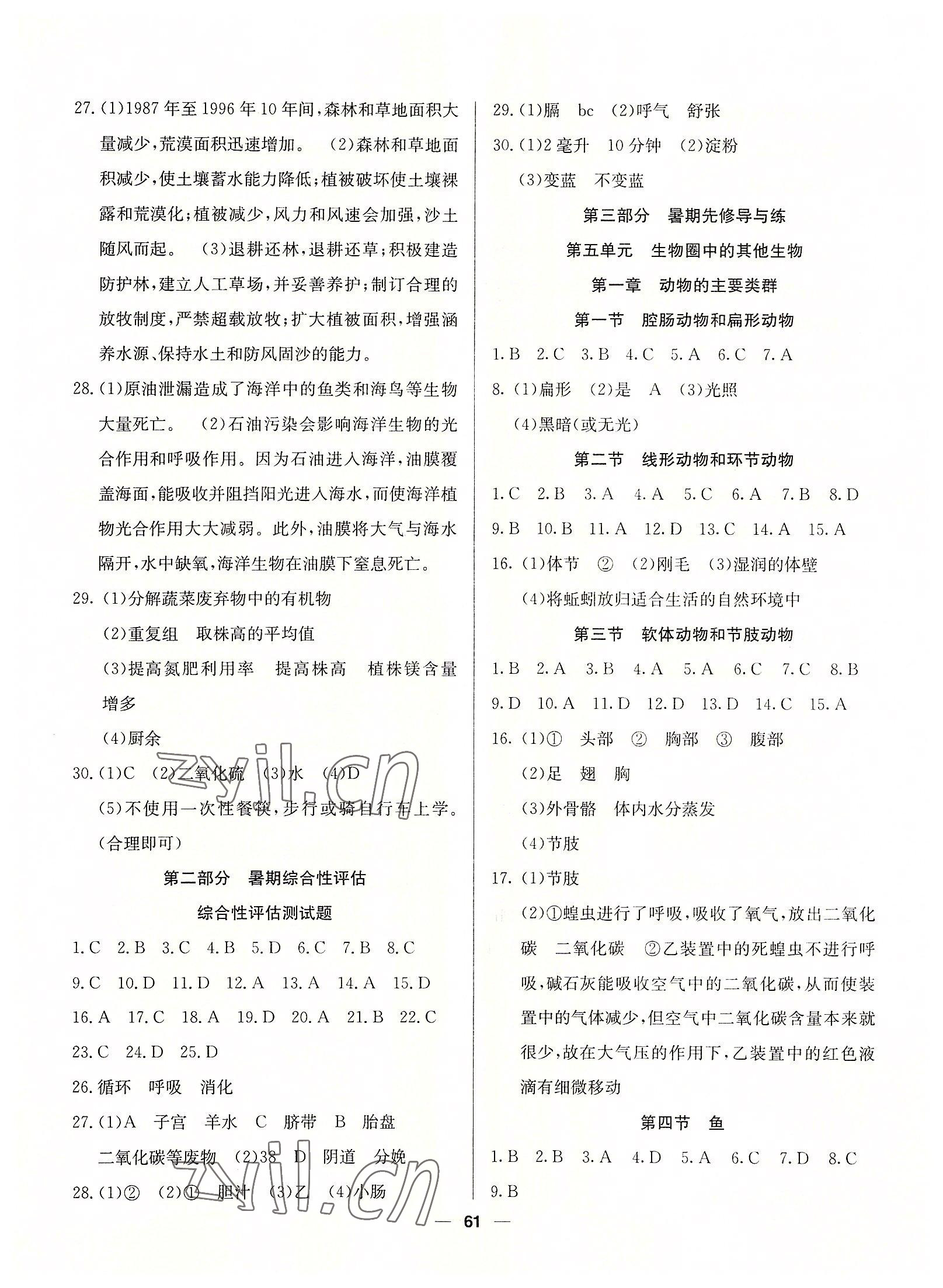注:目前有些书本章节名称可能整理的还不是很完善,但都是按照顺序排列的,请同学们按照顺序仔细查找。练习册 2022年自主学习赢在假期七年级生物 答案主要是用来给同学们做完题方便对答案用的,请勿直接抄袭。