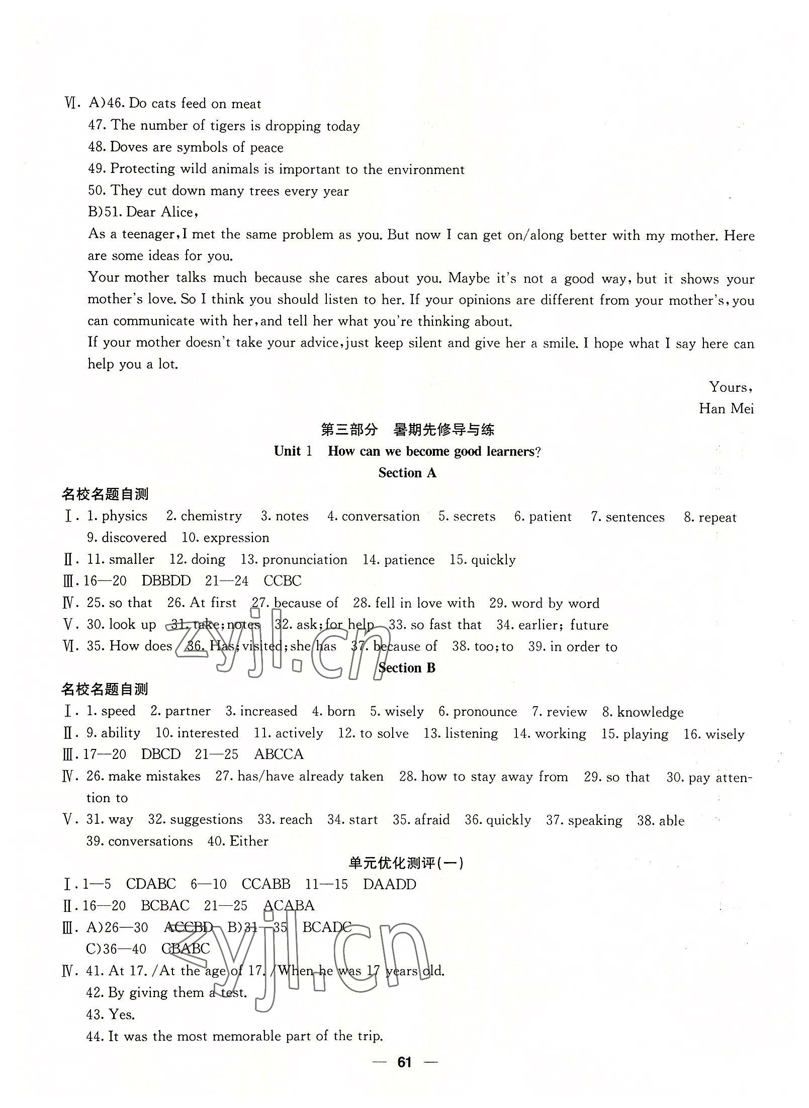 注:目前有些书本章节名称可能整理的还不是很完善,但都是按照顺序排列的,请同学们按照顺序仔细查找。练习册 2022年自主学习赢在假期八年级英语人教版 答案主要是用来给同学们做完题方便对答案用的,请勿直接抄袭。