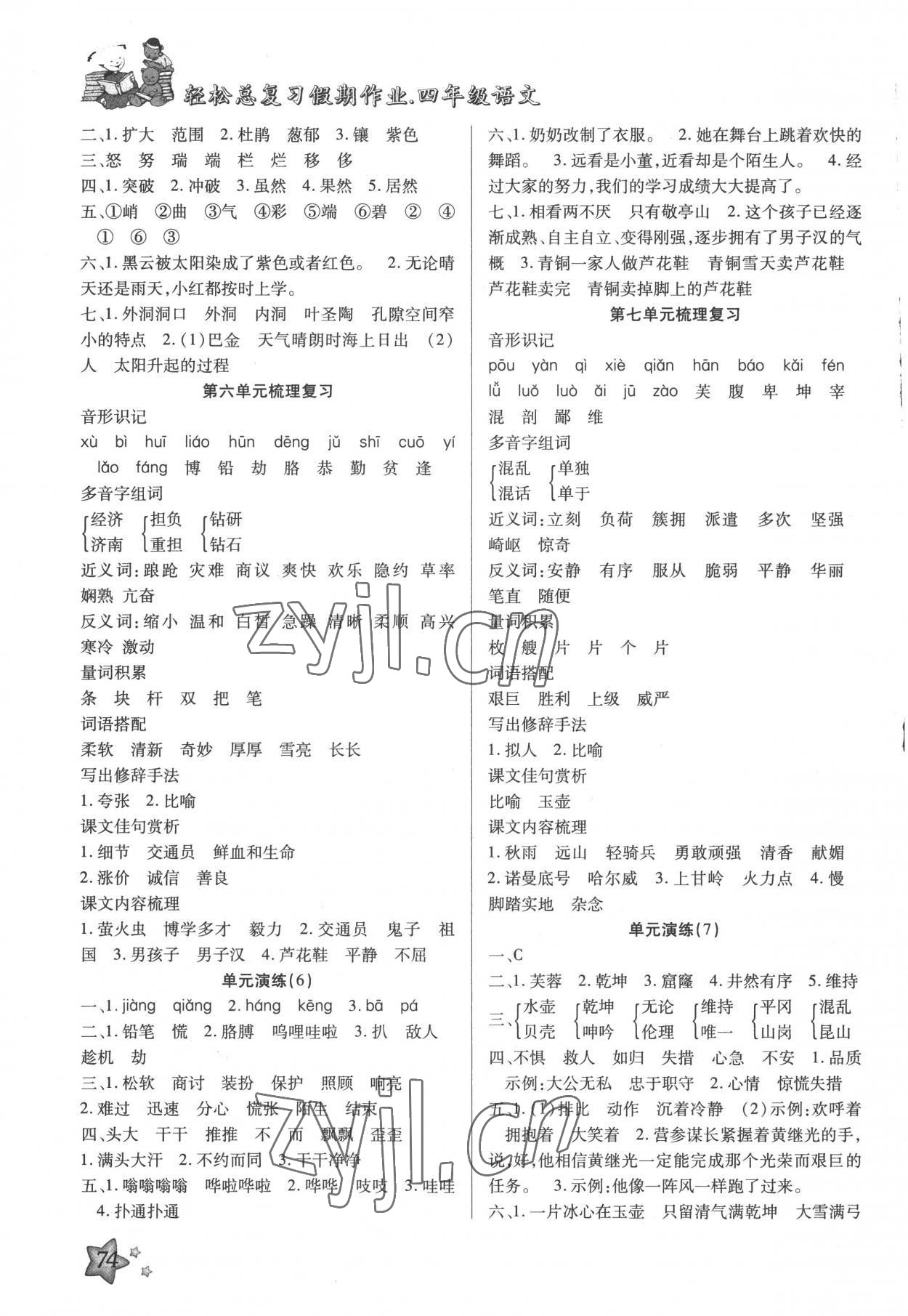 《2022年轻松总复习假期作业四年级语文暑假》