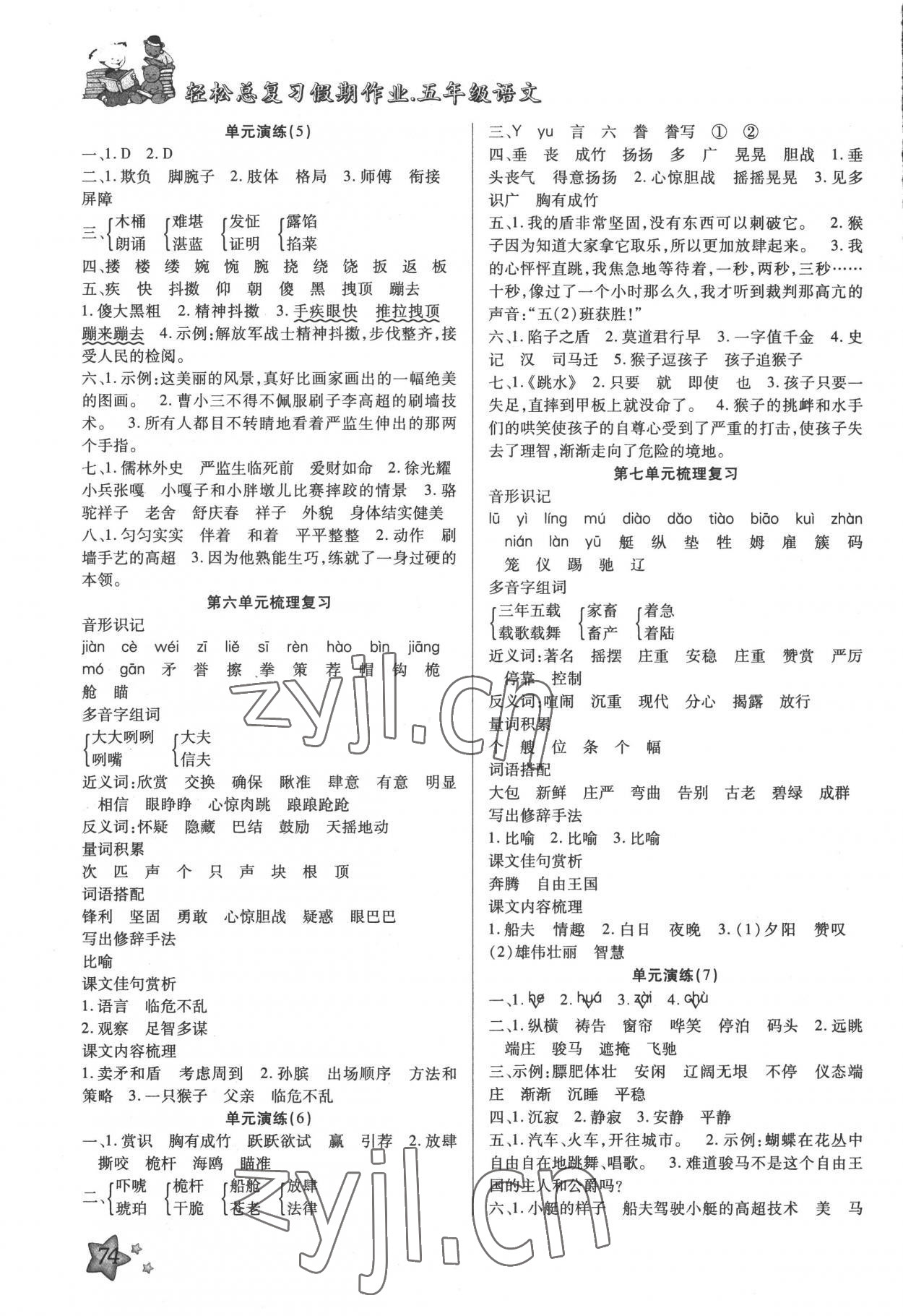 2022年轻松总复习假期作业五年级语文人教版暑假