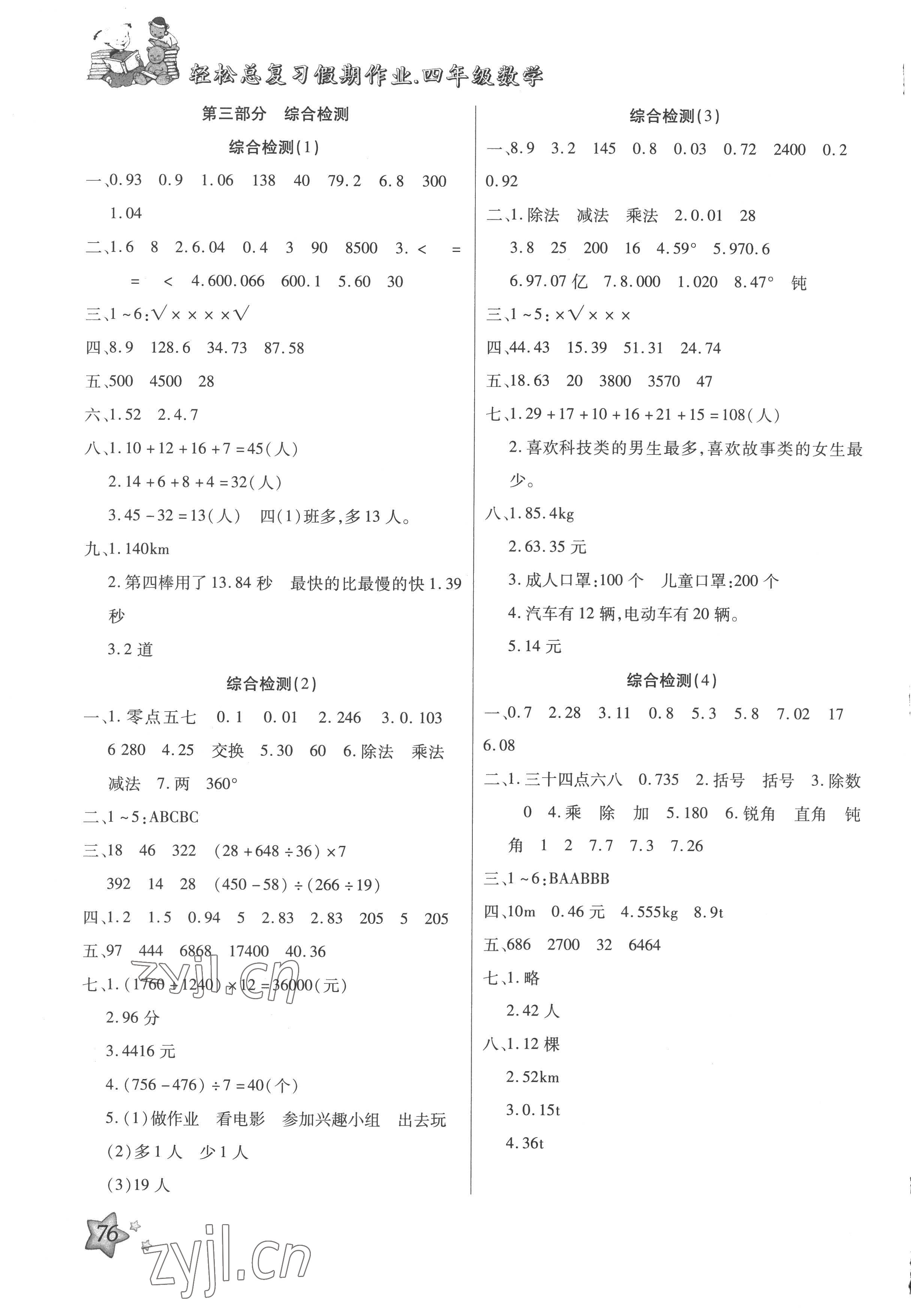 2022年轻松总复习假期作业四年级数学人教版暑假