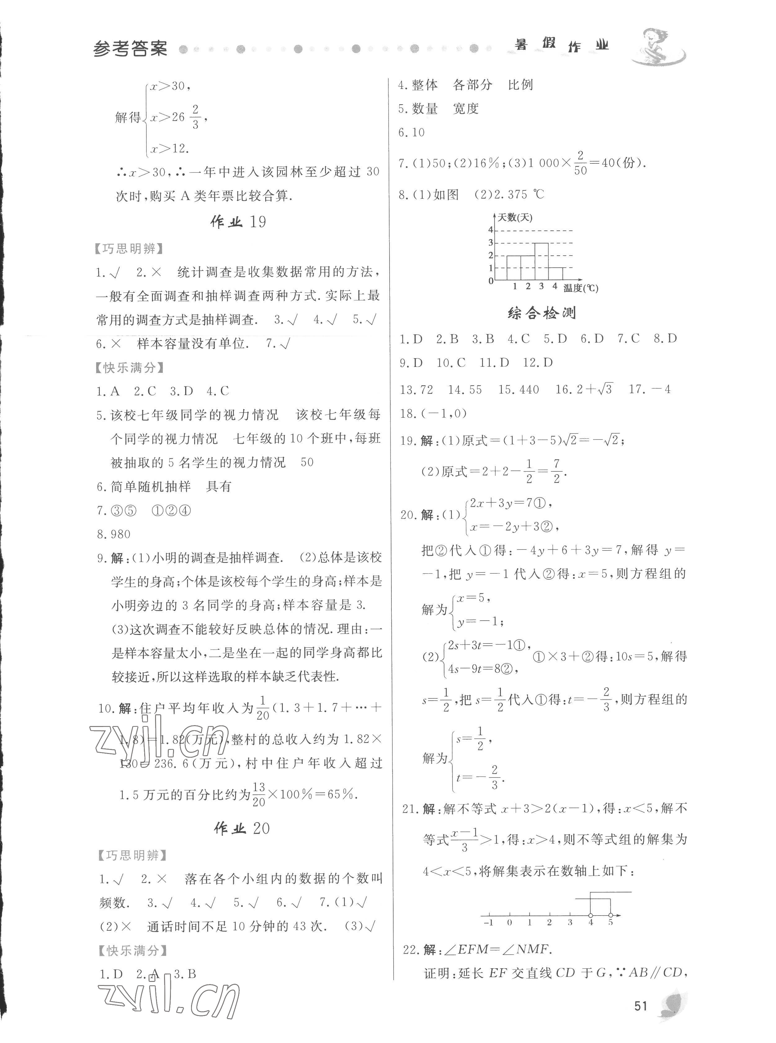 《2022年暑假作业七年级数学内蒙古人民出版社》