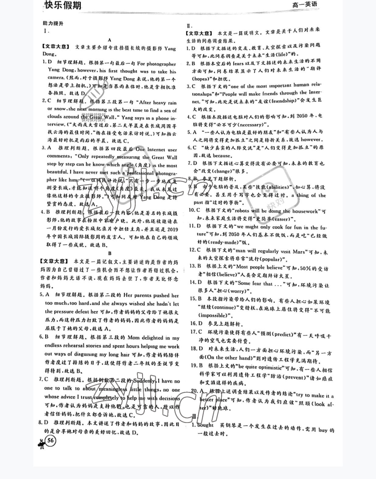 注:目前有些书本章节名称可能整理的还不是很完善,但都是按照顺序排列的,请同学们按照顺序仔细查找。练习册 2022年快乐假期黑龙江教育出版社高一英语浙江专版 答案主要是用来给同学们做完题方便对答案用的,请勿直接抄袭。