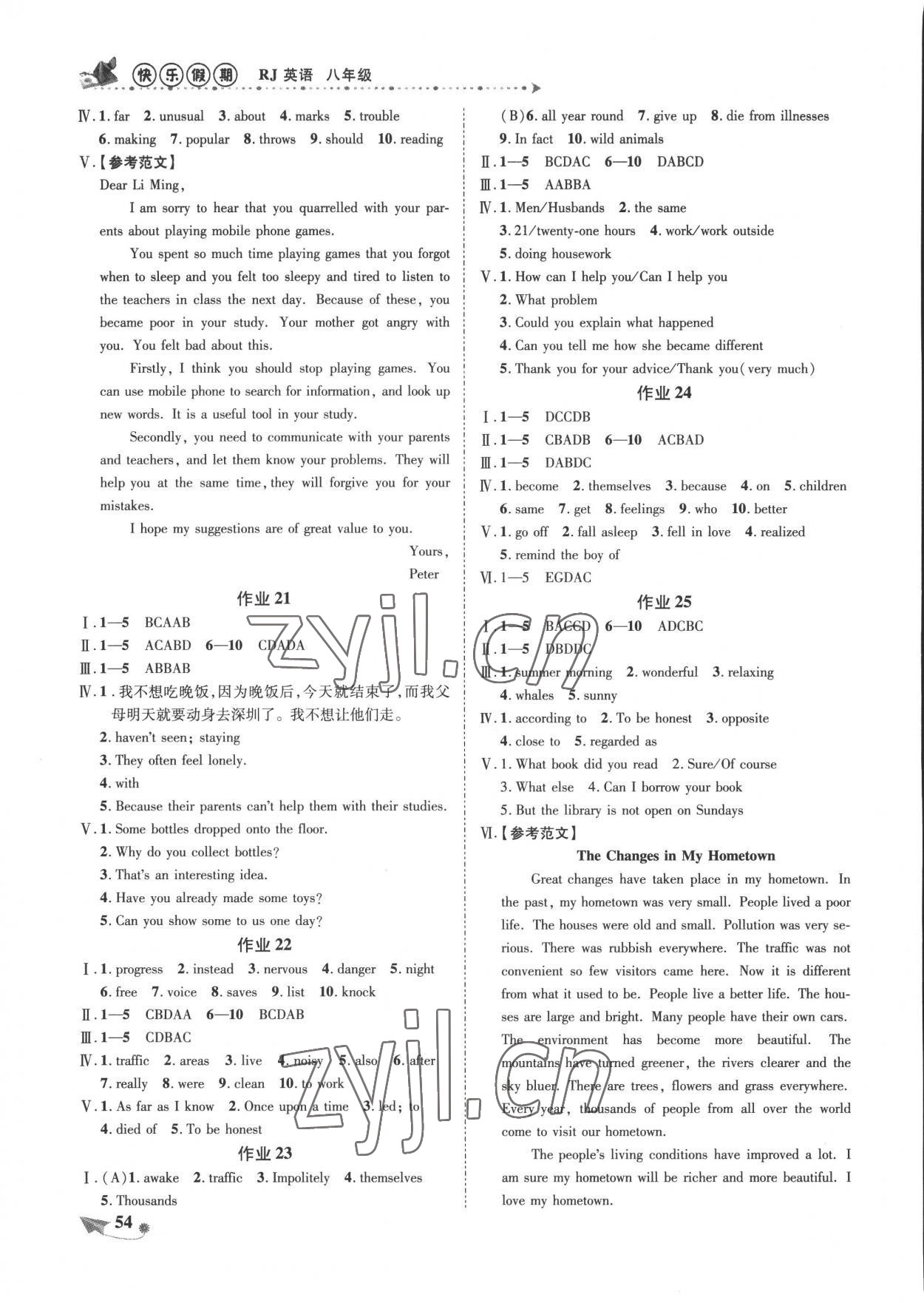 注:目前有些书本章节名称可能整理的还不是很完善,但都是按照顺序排列的,请同学们按照顺序仔细查找。练习册 2022年提优作业快乐假期八年级英语人教版 答案主要是用来给同学们做完题方便对答案用的,请勿直接抄袭。
