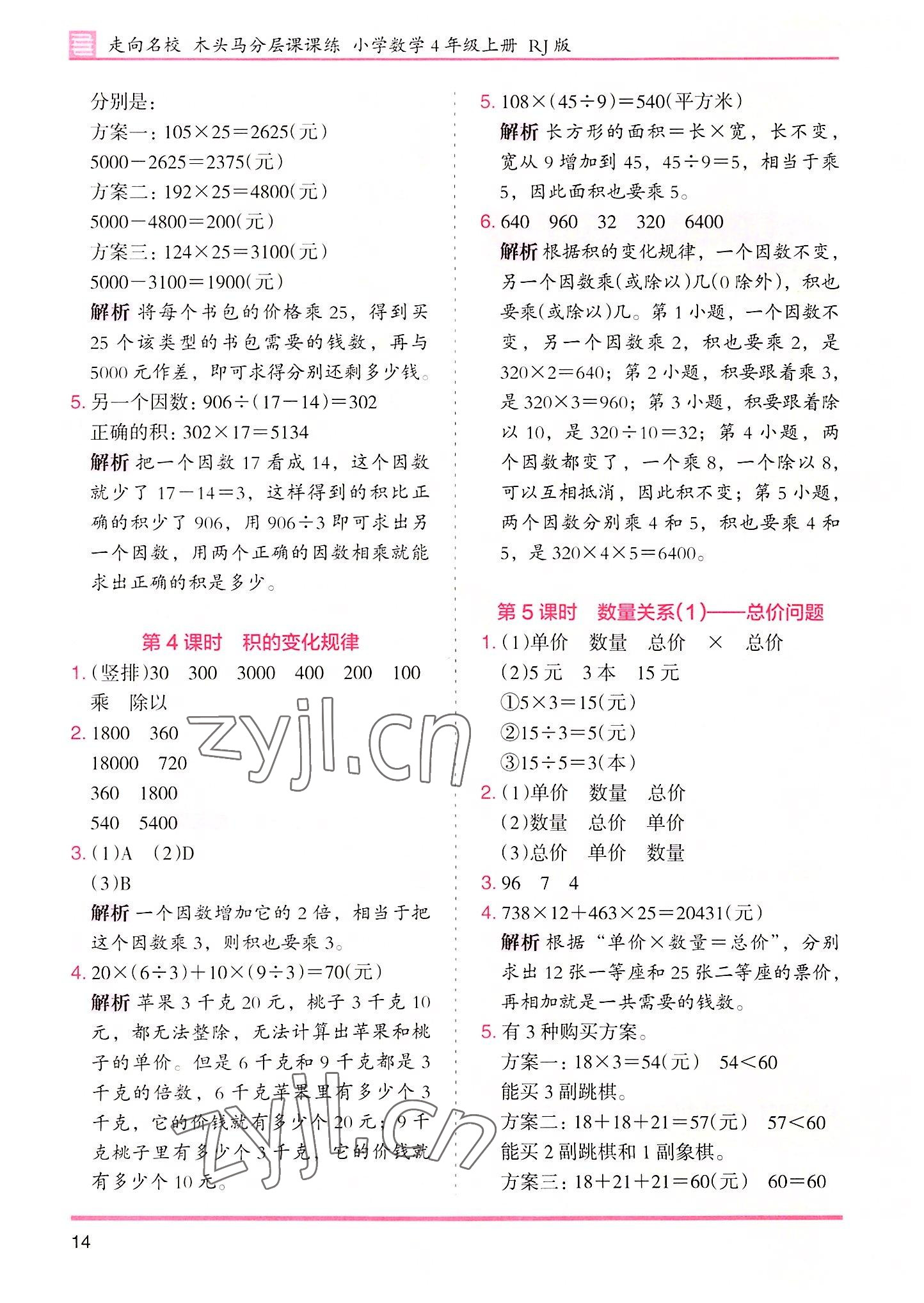 注:目前有些书本章节名称可能整理的还不是很完善,但都是按照顺序排列的,请同学们按照顺序仔细查找。练习册 2022年木头马分层课课练四年级数学上册人教版 答案主要是用来给同学们做完题方便对答案用的,请勿直接抄袭。