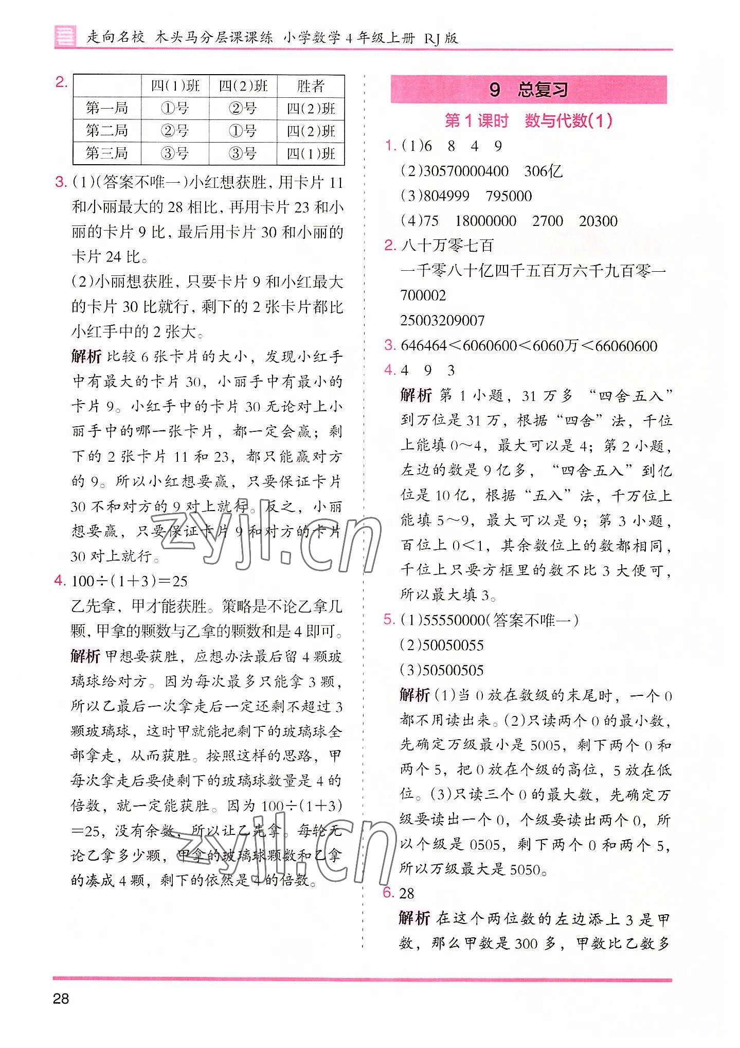 注:目前有些书本章节名称可能整理的还不是很完善,但都是按照顺序排列的,请同学们按照顺序仔细查找。练习册 2022年木头马分层课课练四年级数学上册人教版 答案主要是用来给同学们做完题方便对答案用的,请勿直接抄袭。