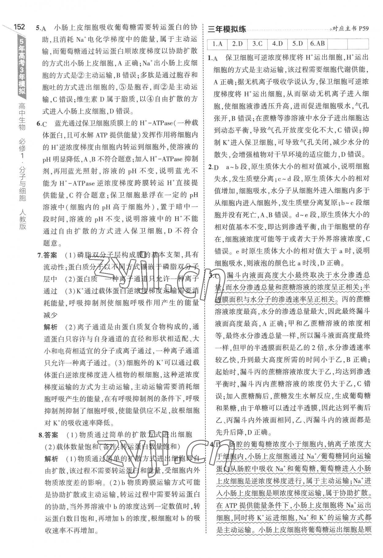 2022年5年高考3年模拟高中生物必修1分子与细胞人教版