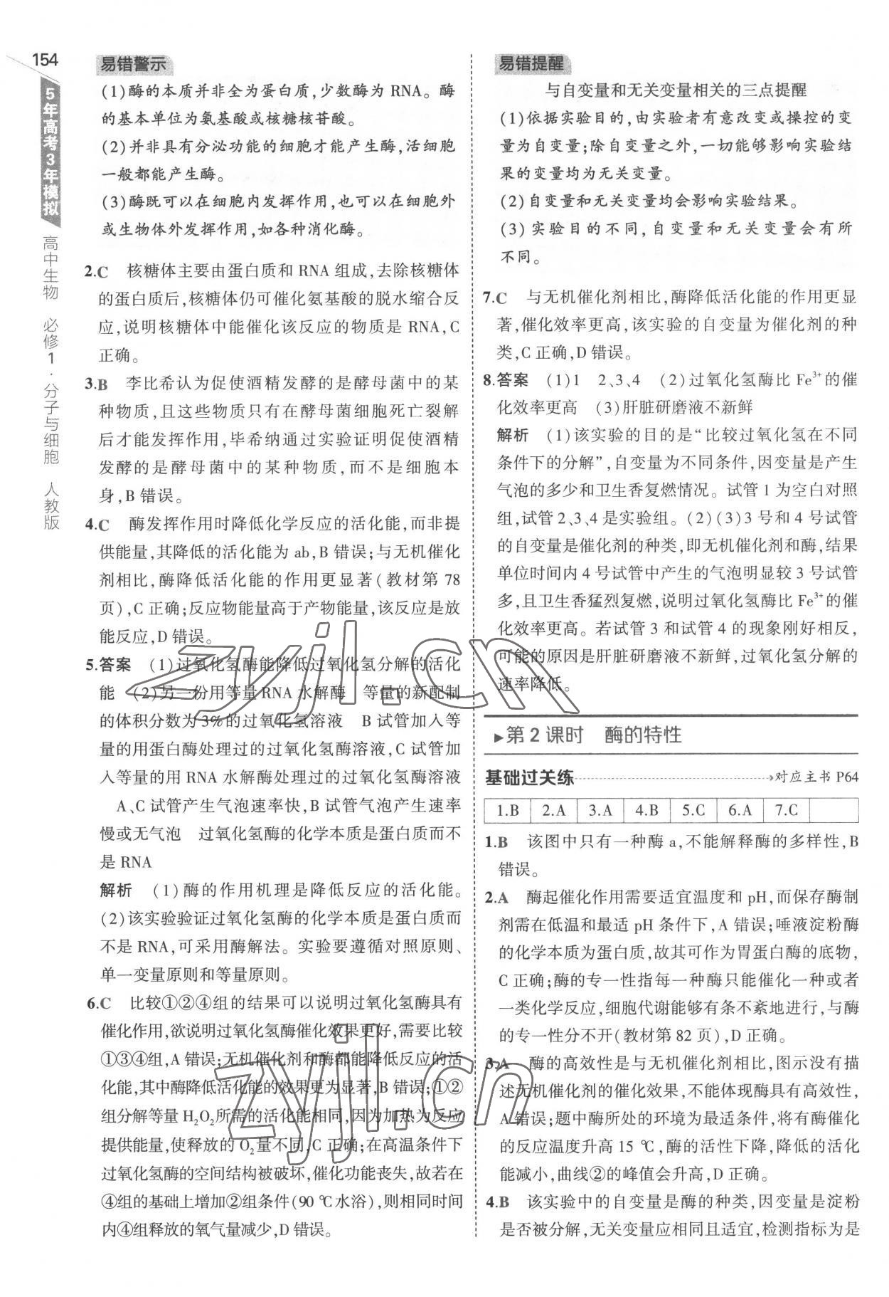 注:目前有些书本章节名称可能整理的还不是很完善,但都是按照顺序排列的,请同学们按照顺序仔细查找。练习册 2022年5年高考3年模拟高中生物必修1分子与细胞人教版 答案主要是用来给同学们做完题方便对答案用的,请勿直接抄袭。