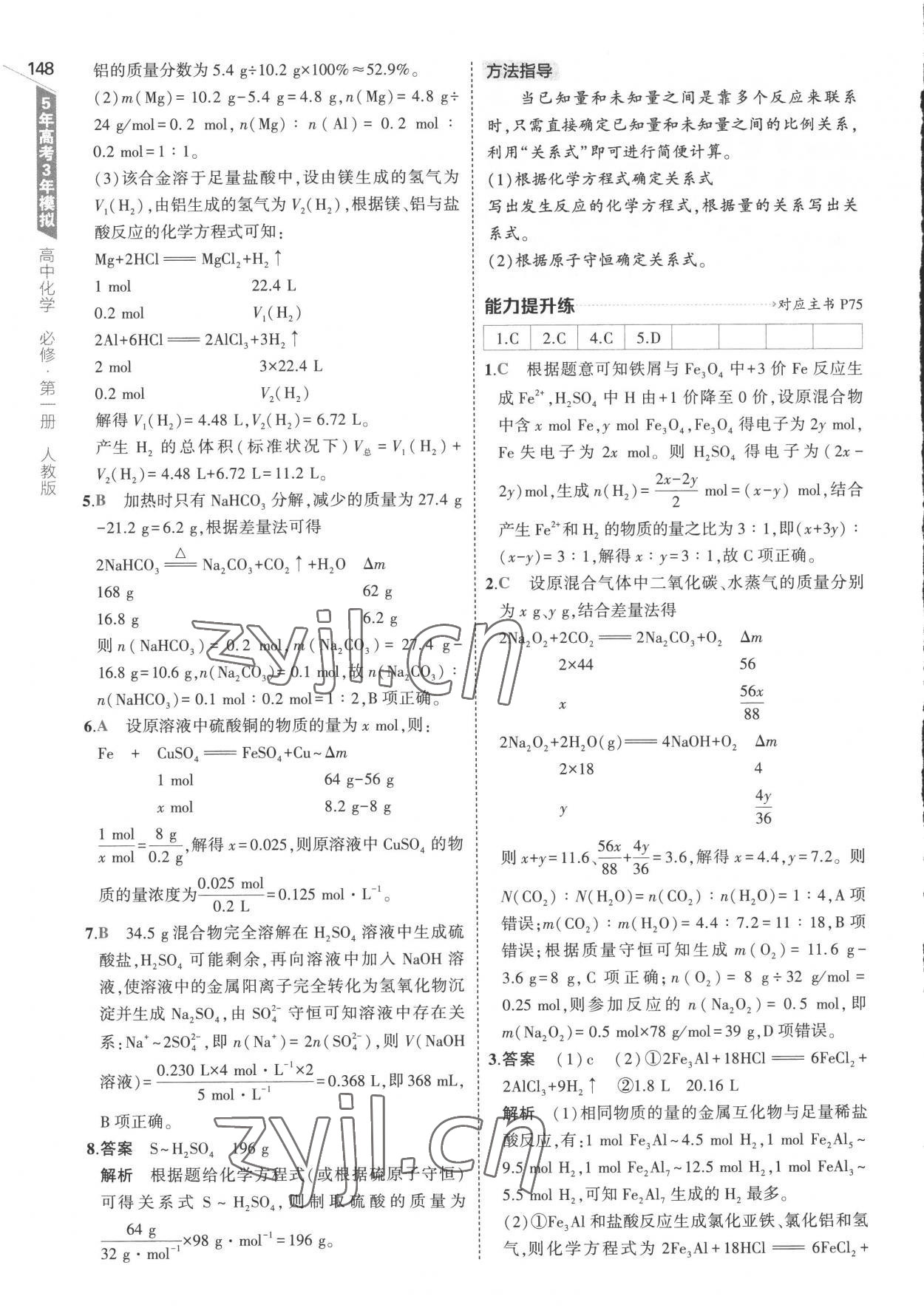2022年5年高考3年模拟高中化学必修第一册人教版