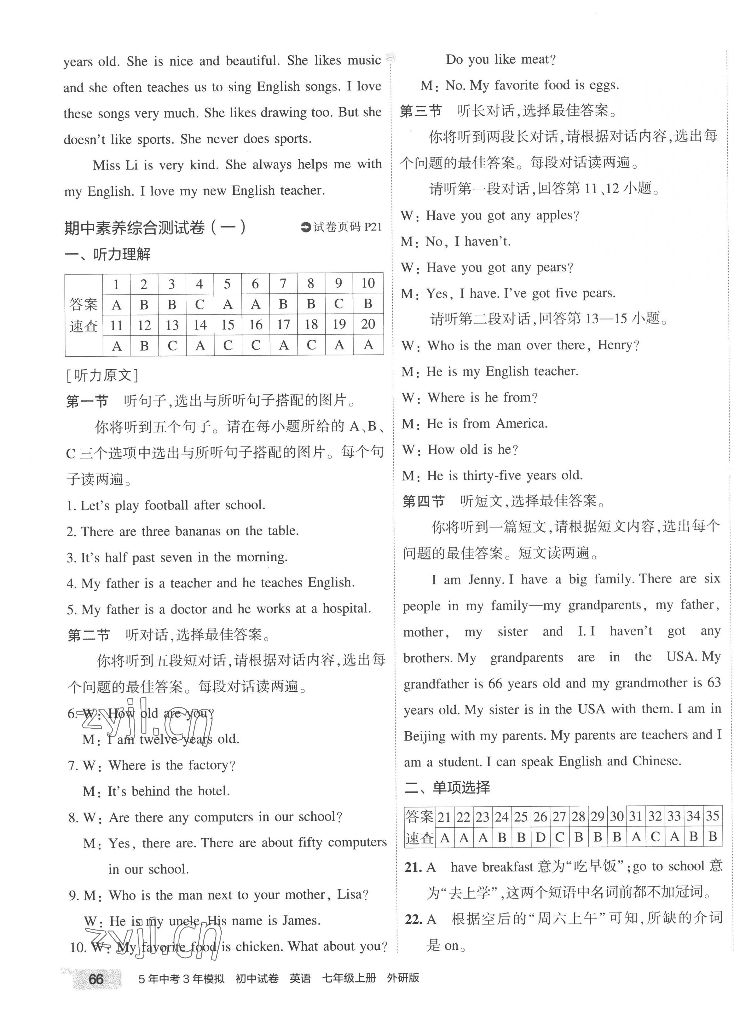 注:目前有些书本章节名称可能整理的还不是很完善,但都是按照顺序排列的,请同学们按照顺序仔细查找。练习册 2022年5年中考3年模拟初中试卷七年级英语上册外研版 答案主要是用来给同学们做完题方便对答案用的,请勿直接抄袭。