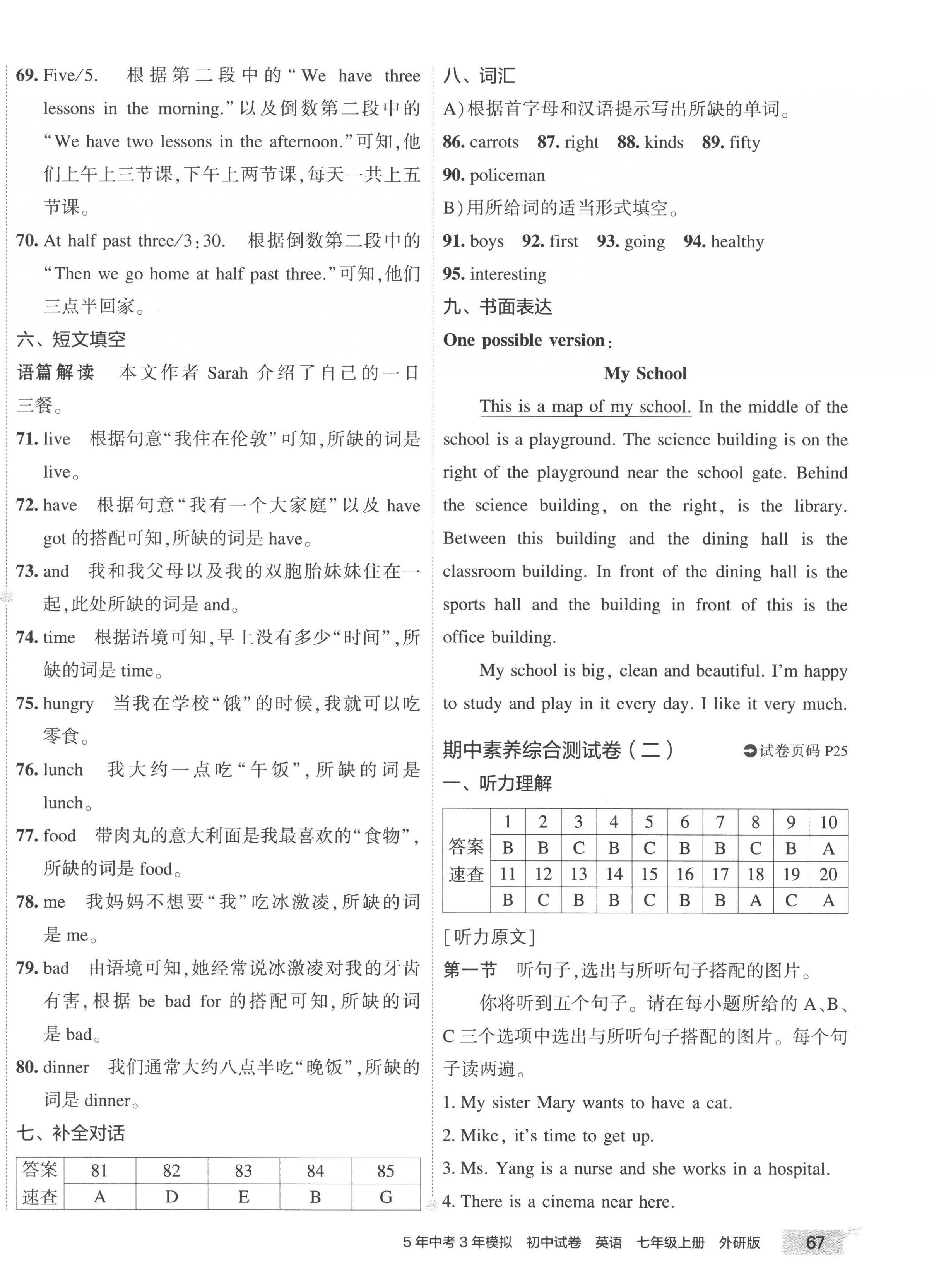 注:目前有些书本章节名称可能整理的还不是很完善,但都是按照顺序排列的,请同学们按照顺序仔细查找。练习册 2022年5年中考3年模拟初中试卷七年级英语上册外研版 答案主要是用来给同学们做完题方便对答案用的,请勿直接抄袭。