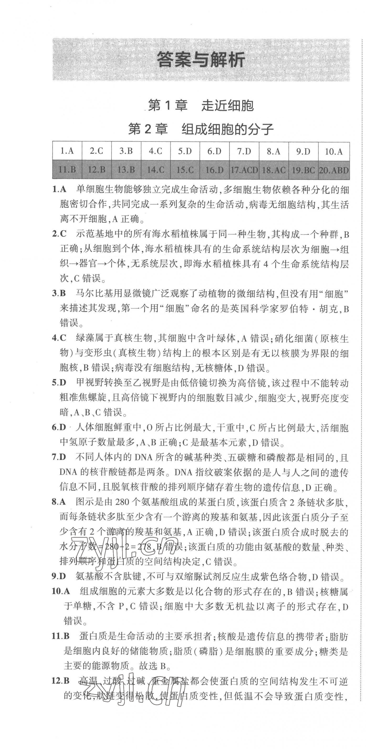 注:目前有些书本章节名称可能整理的还不是很完善,但都是按照顺序排列的,请同学们按照顺序仔细查找。练习册 2022年5年高考3年模拟高中生物必修1分子与细胞人教版 答案主要是用来给同学们做完题方便对答案用的,请勿直接抄袭。