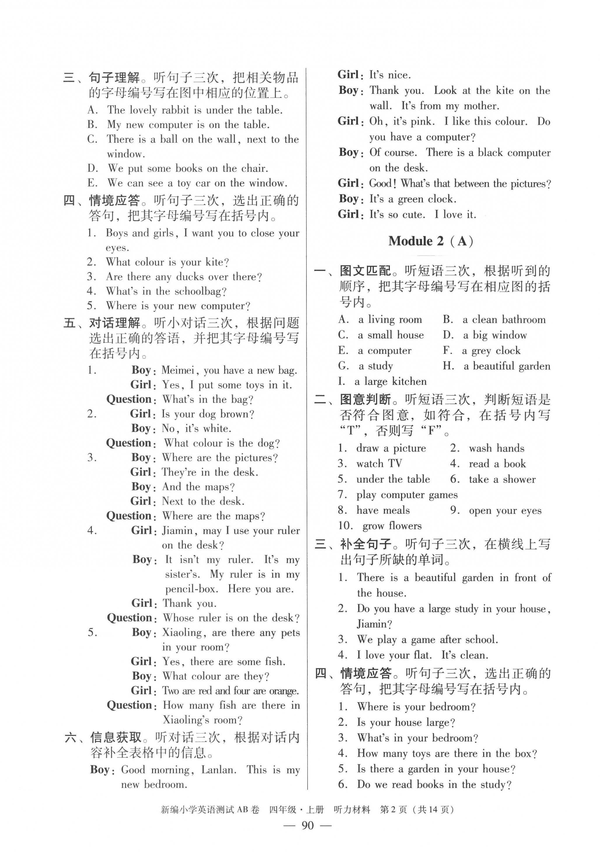 2022年小学英语测试AB卷四年级上册教科版广州专版