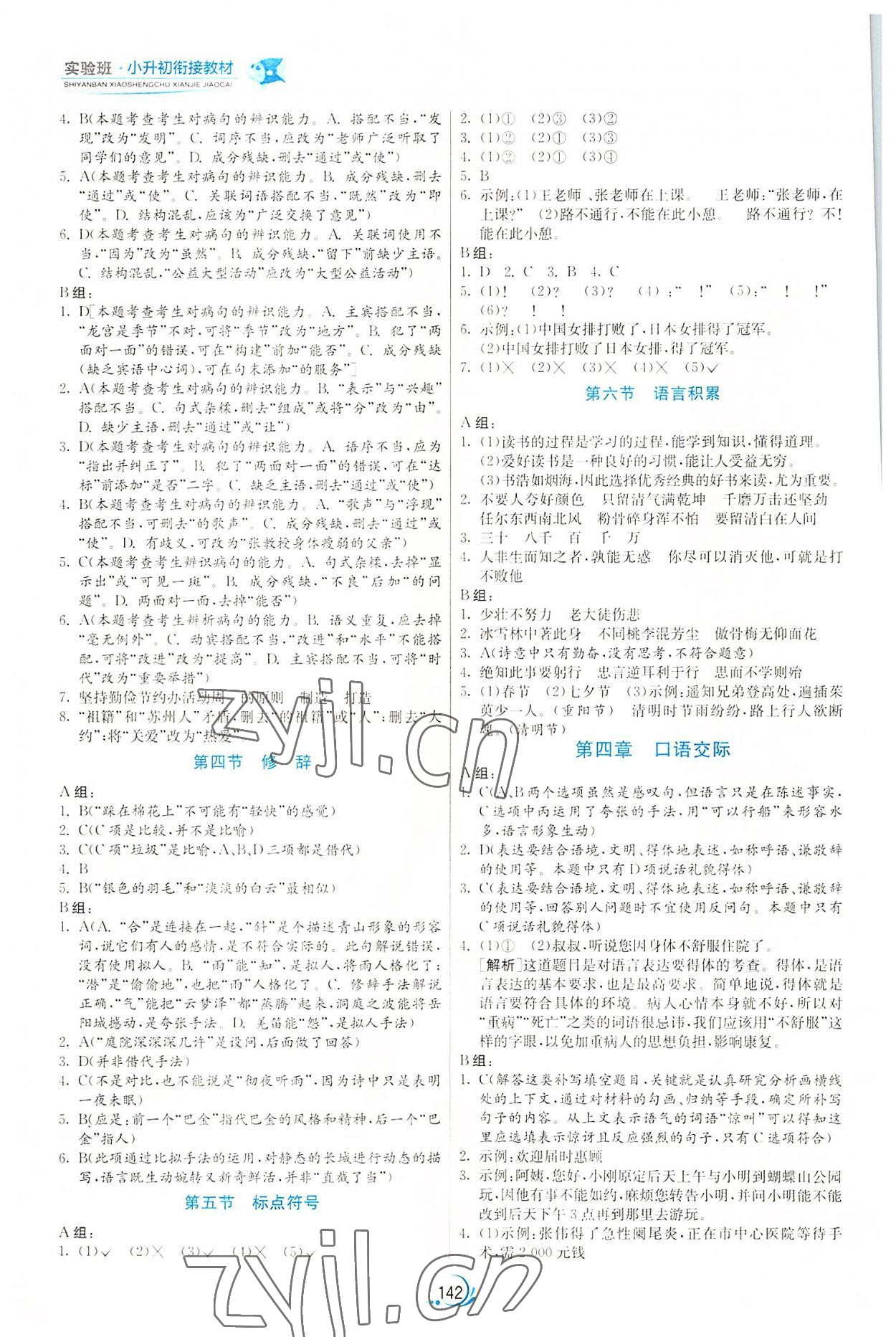 注:目前有些书本章节名称可能整理的还不是很完善,但都是按照顺序排列的,请同学们按照顺序仔细查找。练习册 2022年实验班小升初衔接教材六年级语文 答案主要是用来给同学们做完题方便对答案用的,请勿直接抄袭。