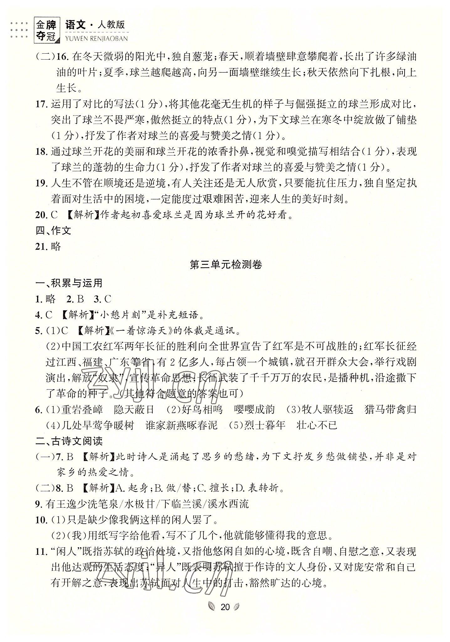 注:目前有些书本章节名称可能整理的还不是很完善,但都是按照顺序排列的,请同学们按照顺序仔细查找。练习册 2022年点石成金金牌夺冠八年级语文上册人教版大连专版 答案主要是用来给同学们做完题方便对答案用的,请勿直接抄袭。
