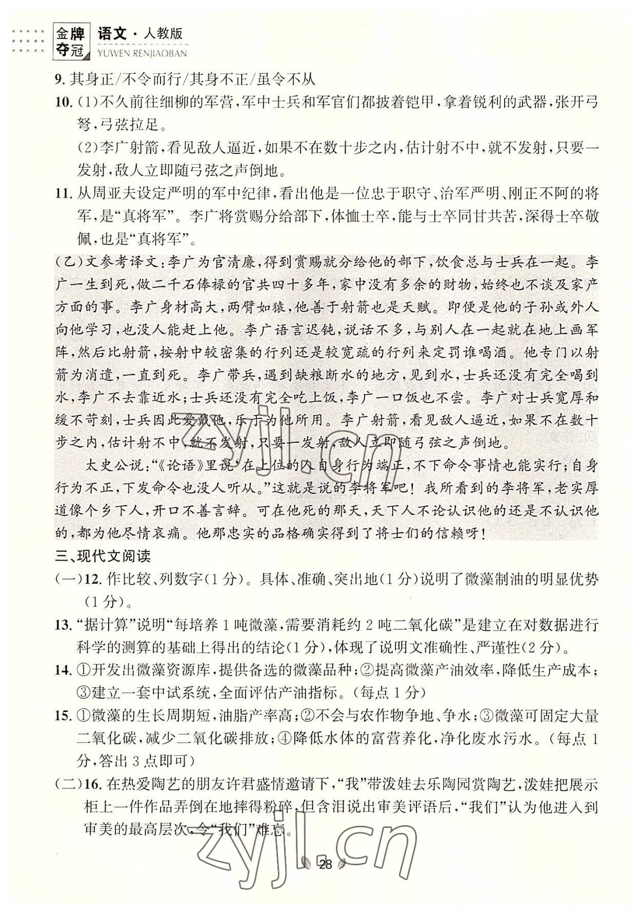 2022年点石成金金牌夺冠八年级语文上册人教版大连专版