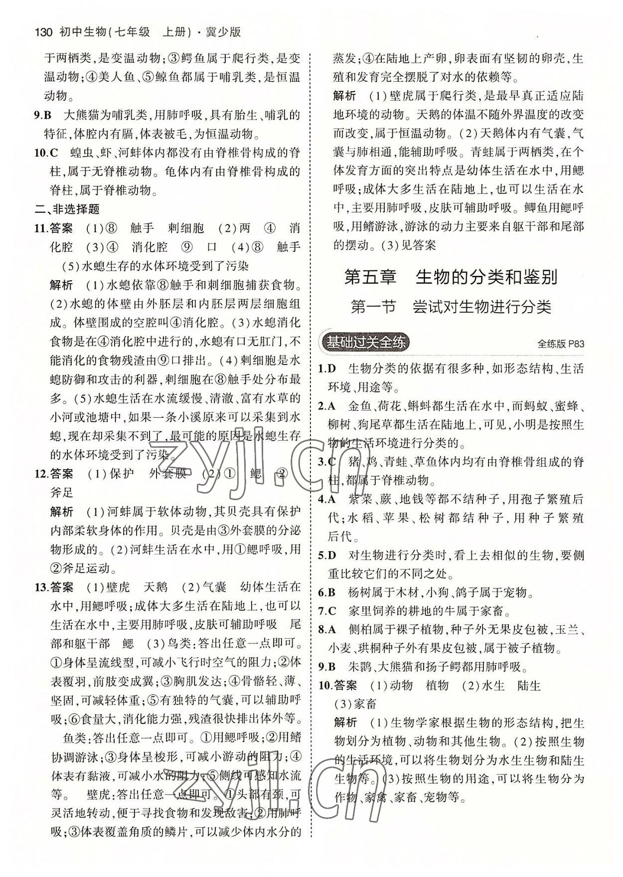 注:目前有些书本章节名称可能整理的还不是很完善,但都是按照顺序排列的,请同学们按照顺序仔细查找。练习册 2022年5年中考3年模拟七年级生物上册冀少版 答案主要是用来给同学们做完题方便对答案用的,请勿直接抄袭。