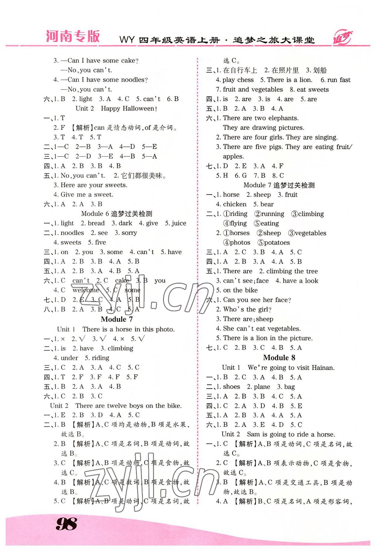 注:目前有些书本章节名称可能整理的还不是很完善,但都是按照顺序排列的,请同学们按照顺序仔细查找。练习册 2022年追梦之旅大课堂四年级英语上册外研版河南专版 答案主要是用来给同学们做完题方便对答案用的,请勿直接抄袭。