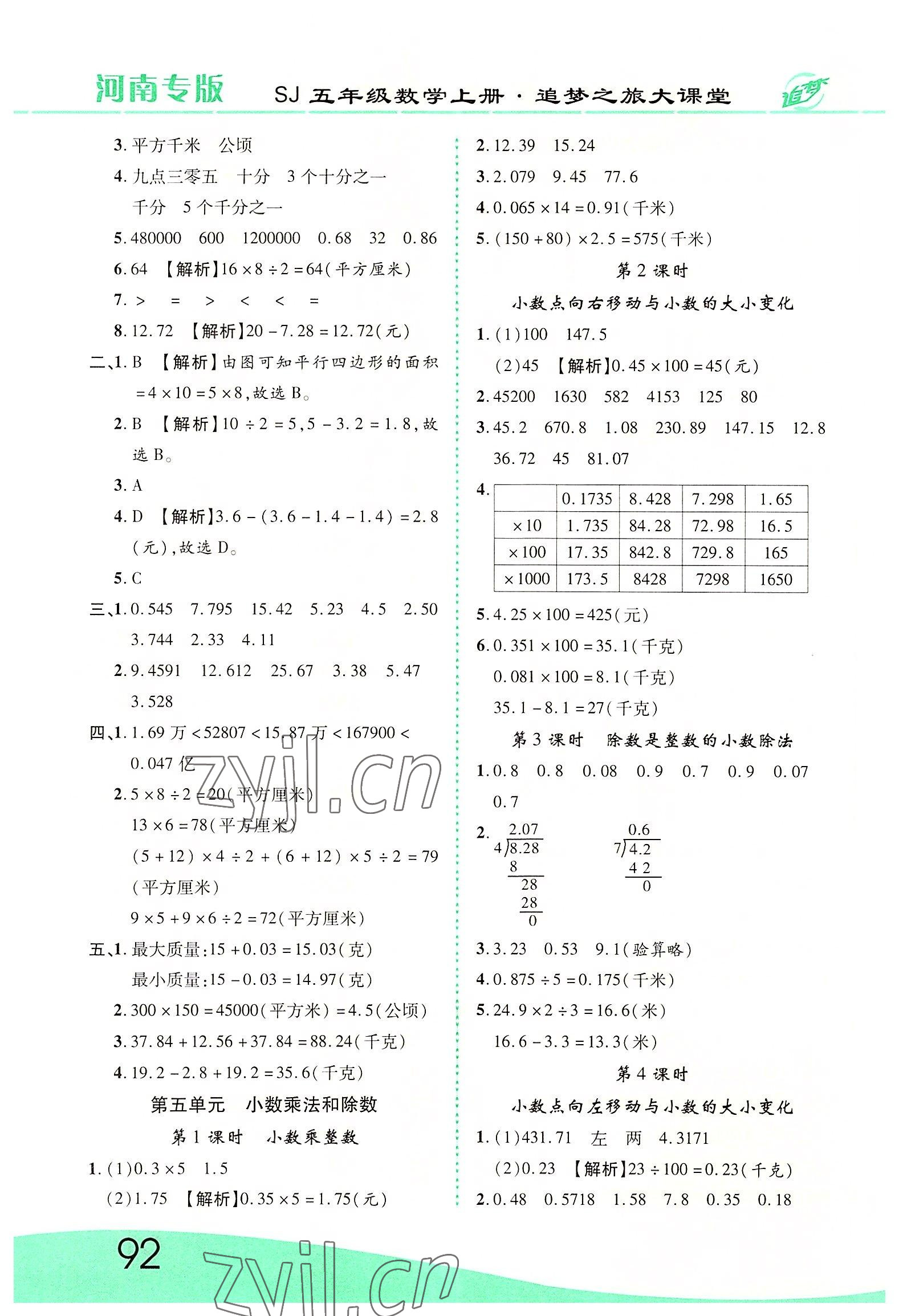 注:目前有些书本章节名称可能整理的还不是很完善,但都是按照顺序排列的,请同学们按照顺序仔细查找。练习册 2022年追梦之旅大课堂五年级数学上册苏教版河南专版 答案主要是用来给同学们做完题方便对答案用的,请勿直接抄袭。