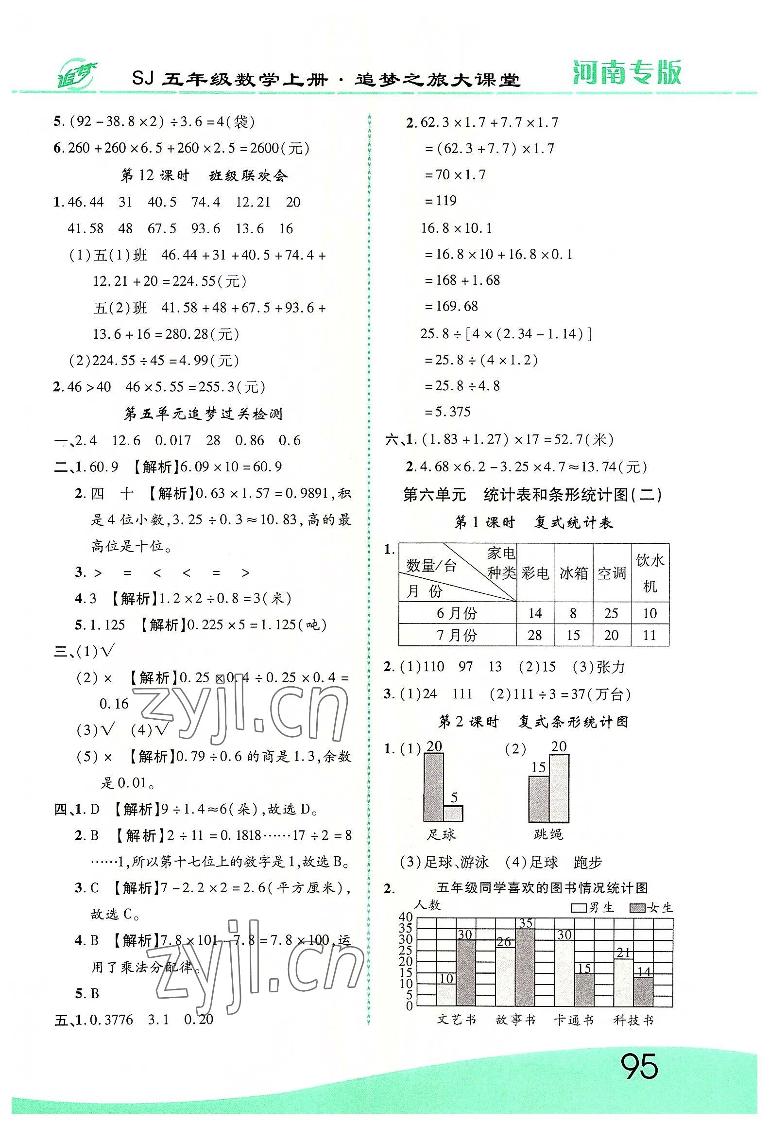 注:目前有些书本章节名称可能整理的还不是很完善,但都是按照顺序排列的,请同学们按照顺序仔细查找。练习册 2022年追梦之旅大课堂五年级数学上册苏教版河南专版 答案主要是用来给同学们做完题方便对答案用的,请勿直接抄袭。